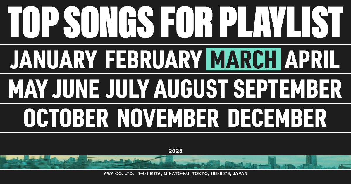 AWA株式会社(本社:東京都港区、代表取締役CEO:冨樫晃己)が運営する、サブスクリプション型(定額制)音楽ストリーミングサービス「AWA(アワ)」は、2023年3月1日(水)から3月31日(金)までに、ユーザーが作成したプレイリストへ採用された楽曲を集計し、3月度の『プレイリスト採用楽曲ランキング』を発表いたしました。