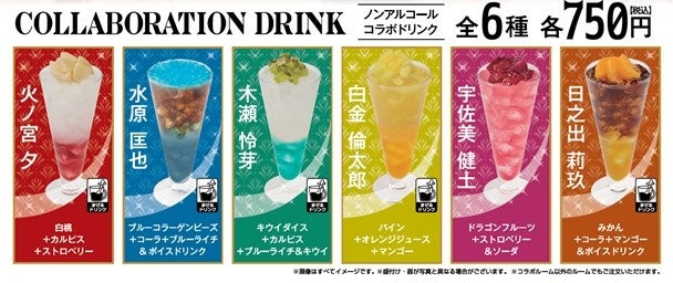 コラボドリンクは、7m!nの各メンバーをイメージしたドリンク6種【各750円(税込)】を販売します。