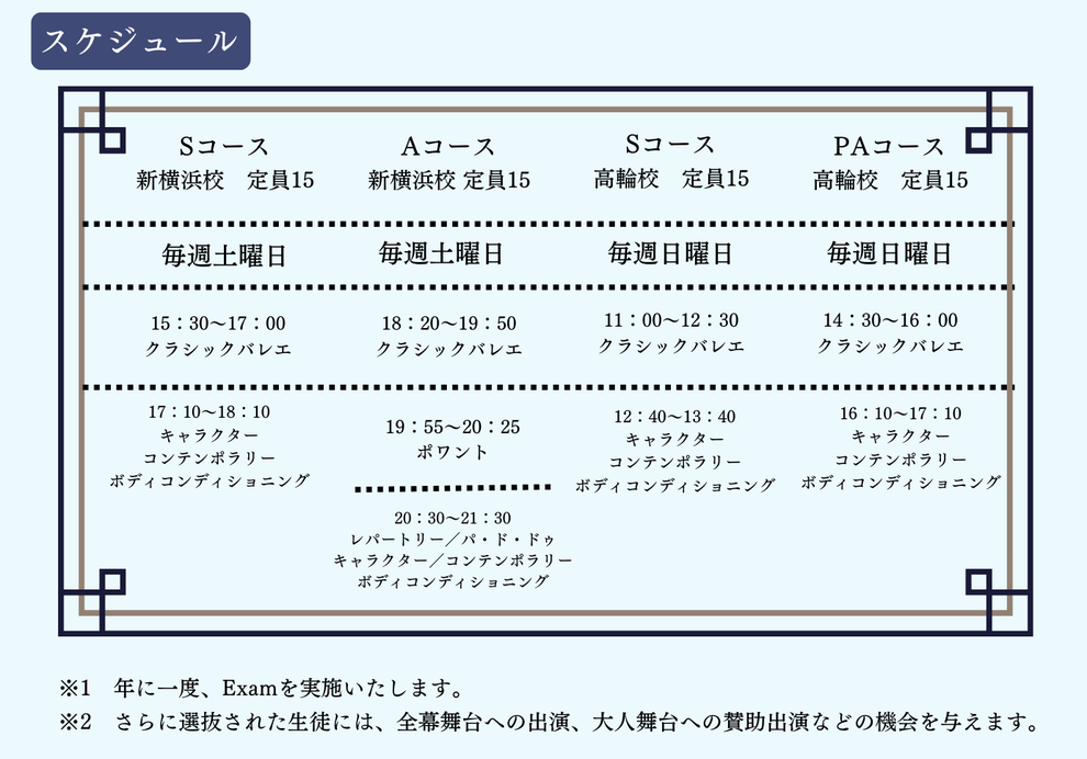 セカンダリーコースとアドバンスコースの間であり、トゥシューズ履き初めのお子様が対象です。