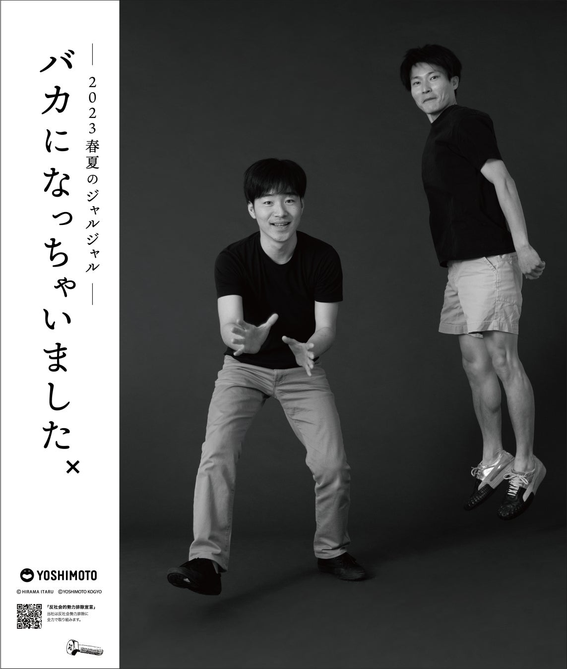 20周年を迎えたジャルジャルの単独ライブ全国ツアー「―2023春夏のジャルジャル― バカになっちゃいましたx 」のキービジュアルが完成しました。写真は平間至氏に依頼。定番の黒ベージュ姿のふたりが音楽に合わせて縦横無尽に動きまわるという、音楽ライブさながらのスタイルで撮影を敢行。一瞬のパッションを切り取ったようなビジュアルとなりました。