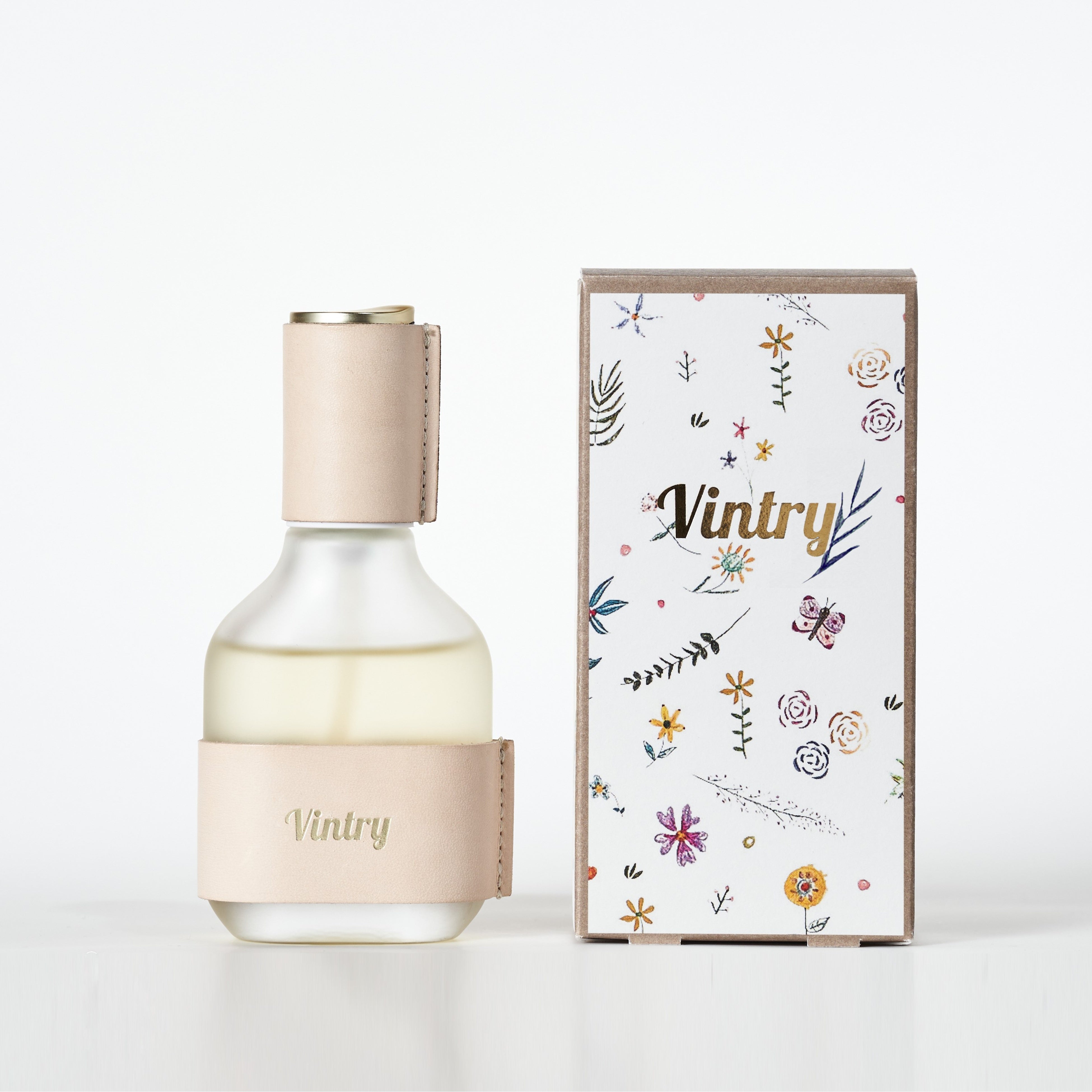 Vintryでは環境や身体に配慮したもの作りを目指しており、マルチパルファムオイル本体も環境への配慮、長く使い続けることを想定としたデザイン設計が行われています。繰り返しリサイクルができるガラス瓶をボディとし、使い続けることで生まれる経年変化を楽しめるヌメ革製のスリーブを本体に付けています。使い終えたら中身はリフィルで補充し、容器は繰り返し使い続ける、自身のケアを時間と共に楽しみ、積み重ねていくライフスタイルを提案します。