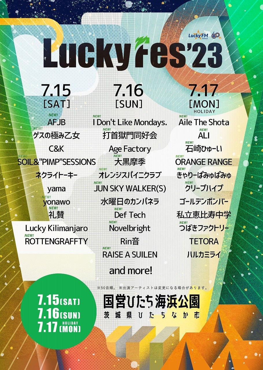 茨城放送は「音楽と食とアートの祭典」をテーマに、7月15日(土)・16日(日)・17日(月・祝)の日程でLuckyFes2023を開催します。