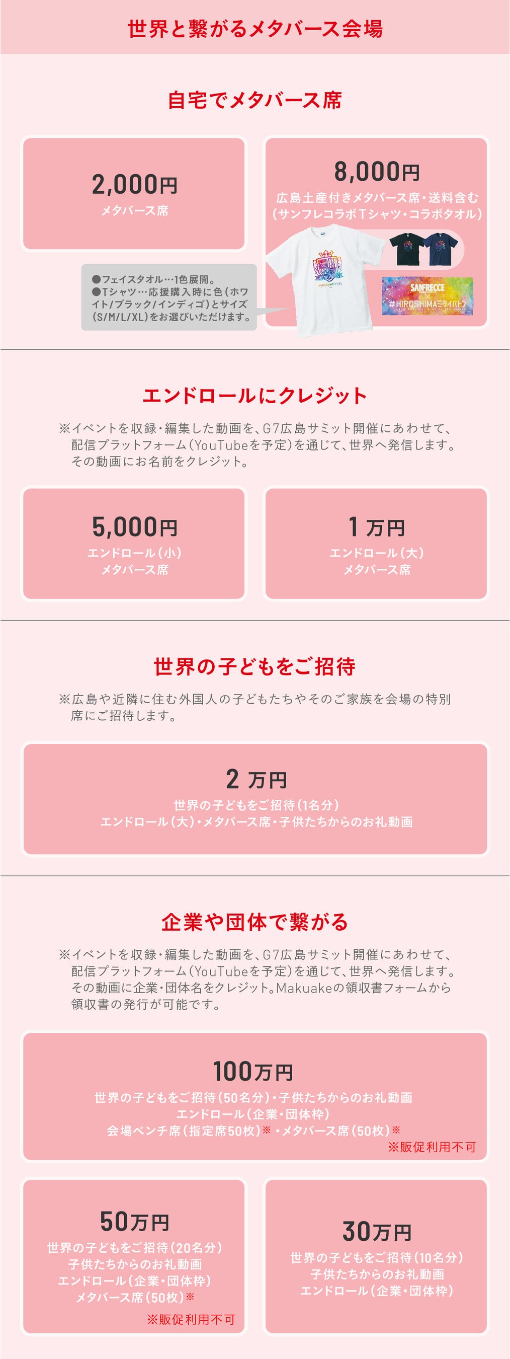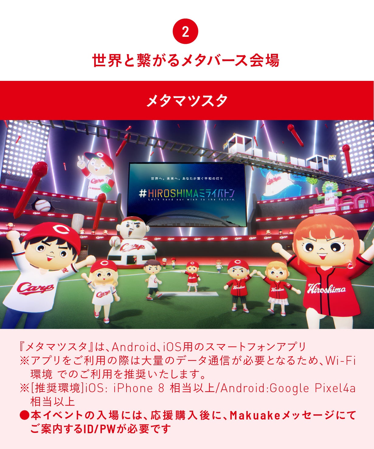 また、広島にお越しになれない方のために、アバターとしてメタバース空間に入場し、大型ディスプレイに映し出されるイベントのライブ配信で、リアル会場と一緒に感動を共有できるメタバース席も発売中です。