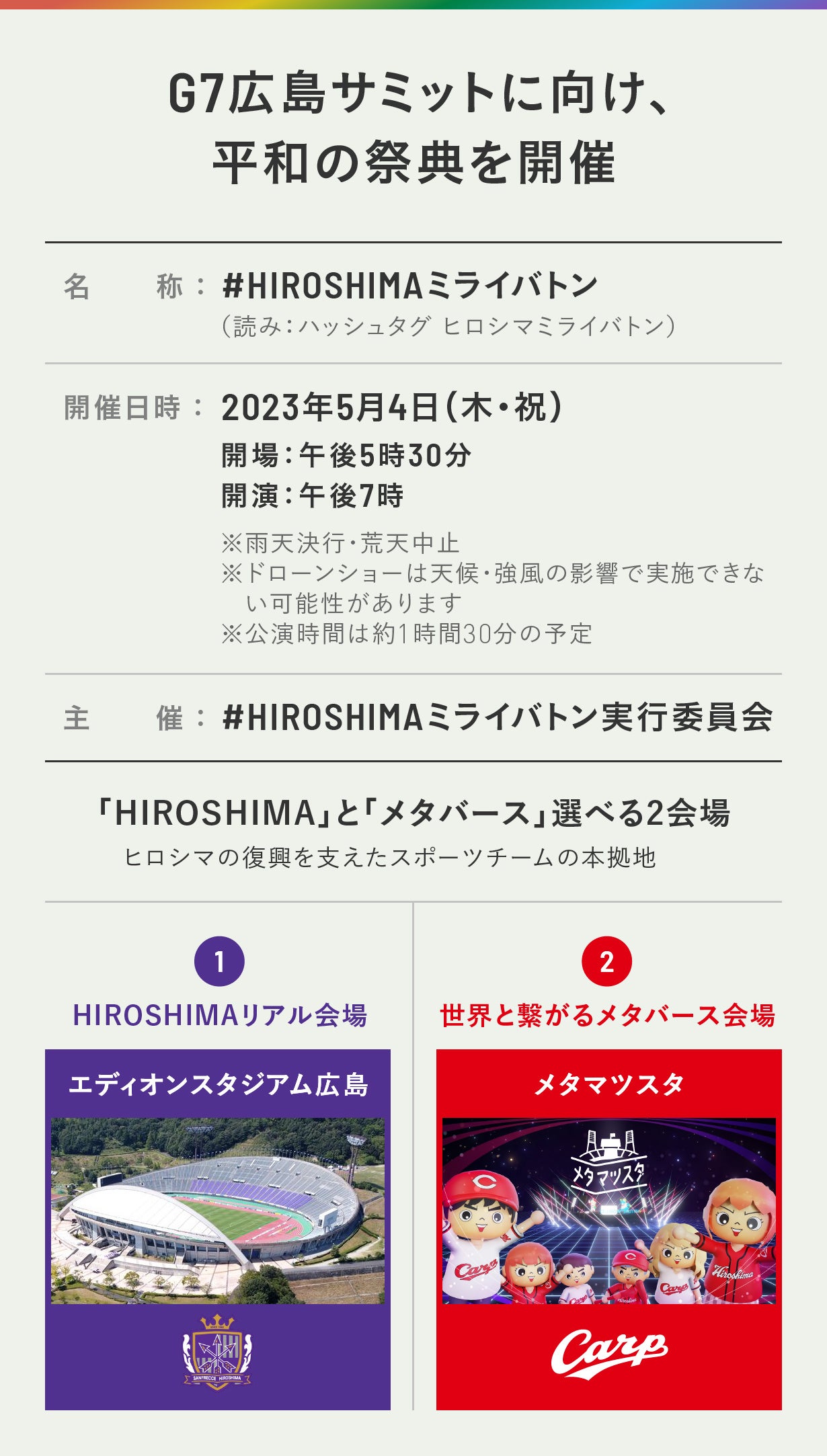 主 催 #HIROSHIMAミライバトン実行委員会(広島テレビなどで構成)