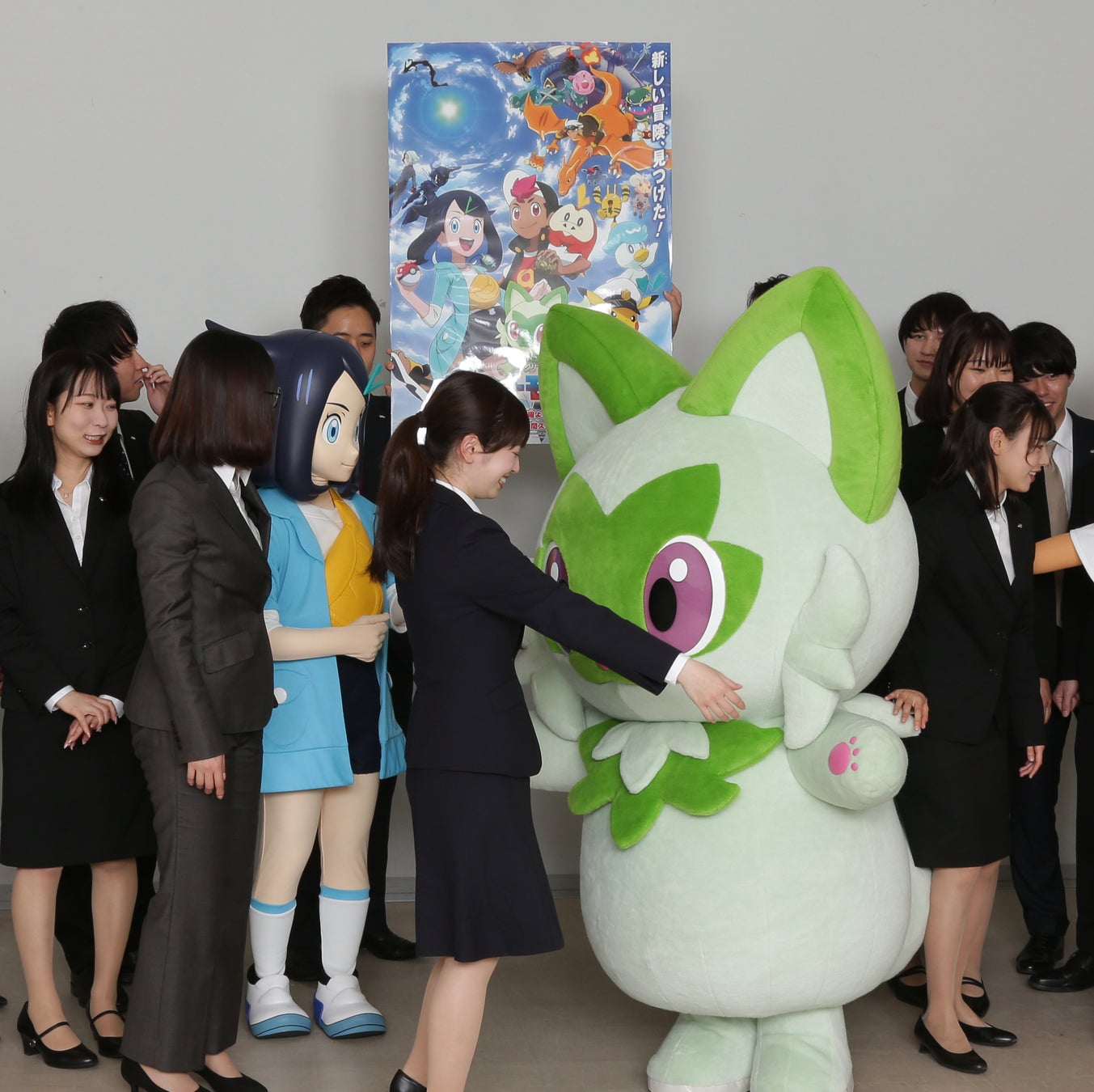 4月14日(金)からスタートするテレビアニメ新シリーズ「ポケットモンスター」(テレビ東京系)のW主人公リコとロイ、リコのパートナー・ニャオハがテレビ東京新入社員の元へサプライズで応援に駆けつけました。登場時には、新入社員は驚いた様子で、「かわいい」「かっこいい」といった声が上がっていました。