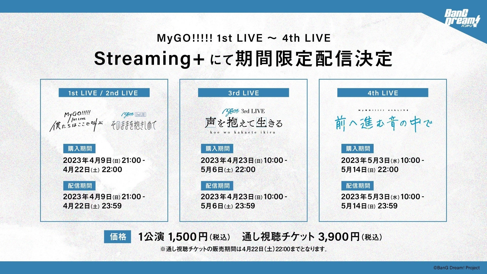 - MyGO!!!!! 1st LIVE~4th LIVEの期間限定有料配信