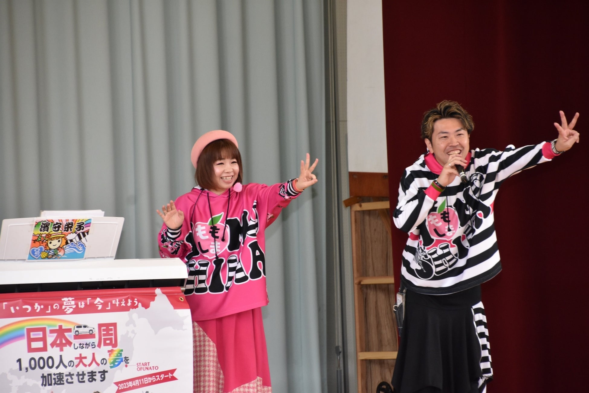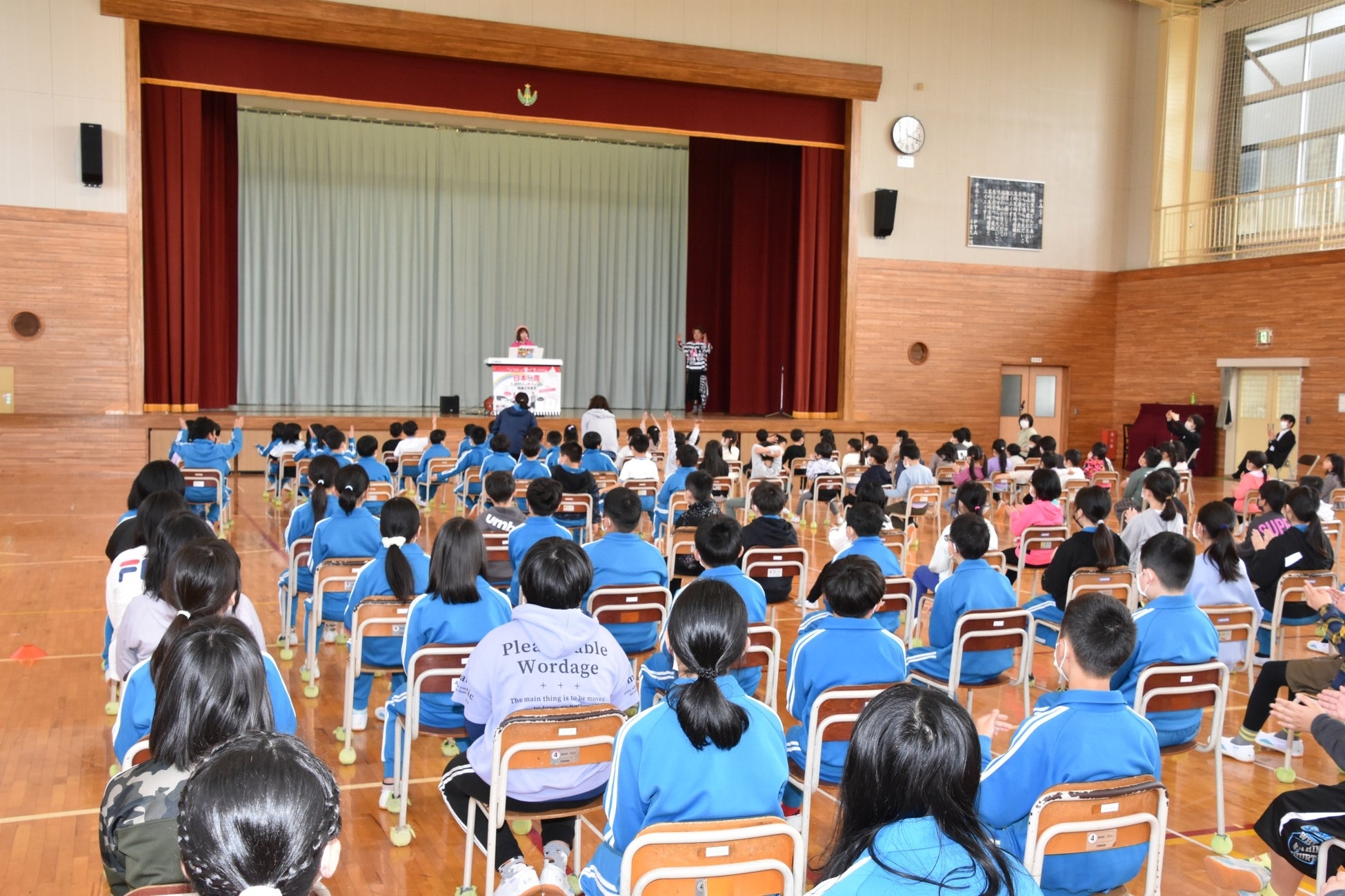 このうち末崎小学校では、3時間目の授業45分で行われ、濱守さんの夢を叶えてきた実体験と歌5曲、未来アーティストたっちさんの夢を叶えるワークで、子どもたちは時折うなずき、目を輝かせながら聞き入っていた。