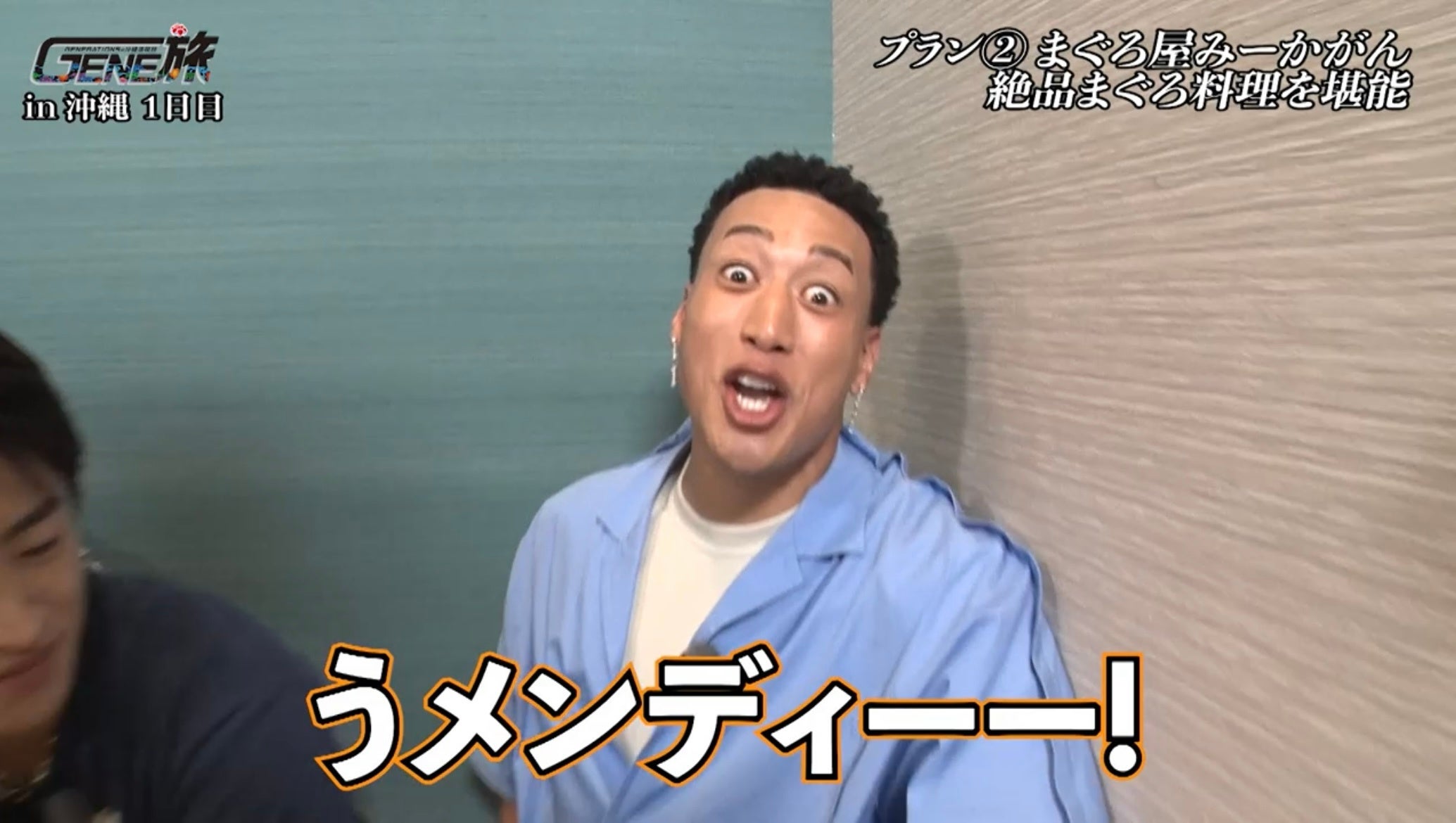 そして1日目のラストはGENEが全員一致で泊まりたかったというオクマ プライベートビーチ&リゾートに宿泊。「GENE旅1日総括してどうでしたか?」と隼に振られたメンディーは大声で「イ〜ヤ〜サ〜サ〜!!」と答えた。