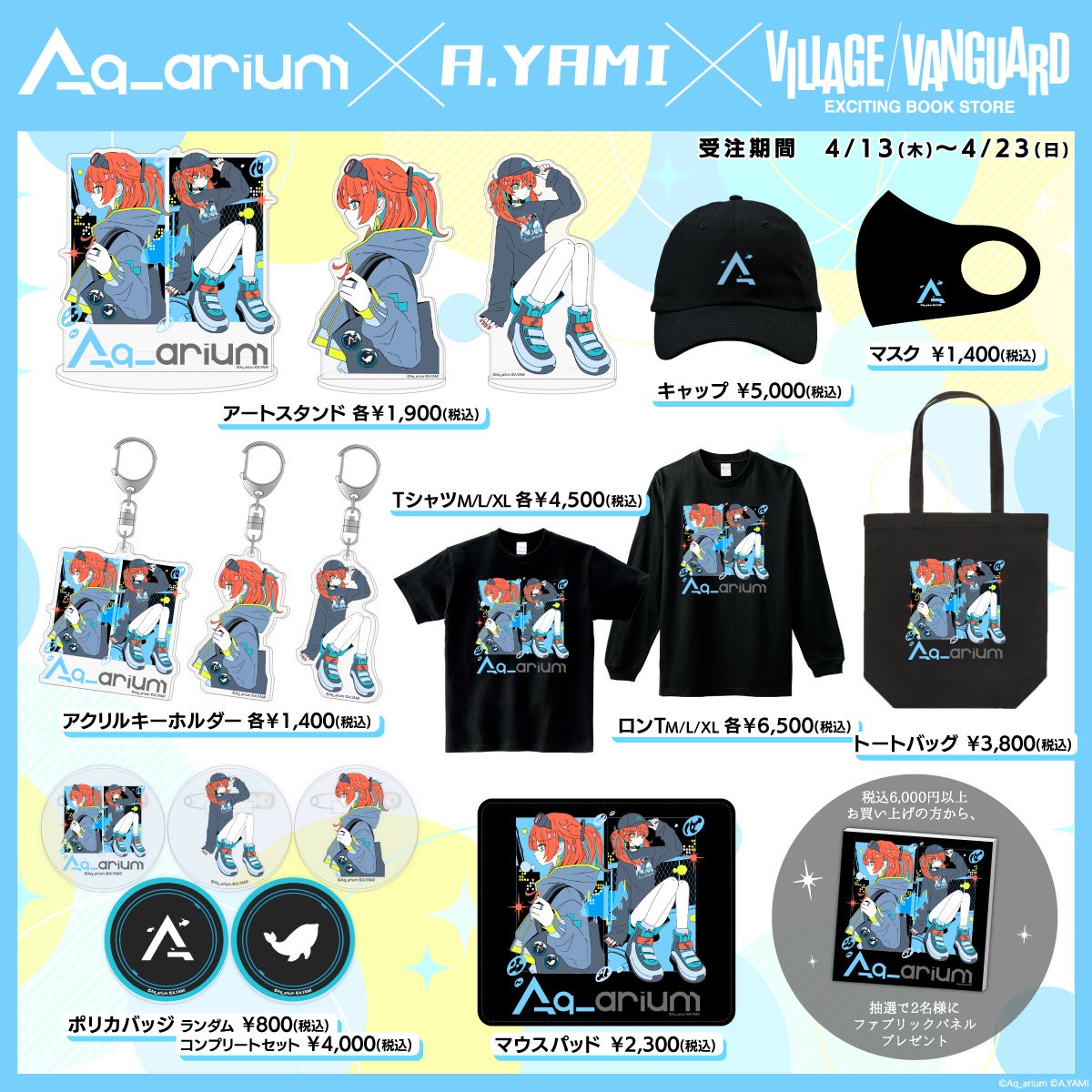 2023年4月13日(木)より、バーチャルシンガー【多々星カイリ】コラボグッズ第二弾がヴィレッジヴァンガードオンラインストアにて完全受注販売決定!前回のコラボに続き、早くも第ニ弾です。前回のコラボに続き、早くも第ニ弾です。イラストレーターの【A.YAMI】さんによるイラストも必見!さらに、税込6,000円以上お買い上げの方から、抽選で2名様にファブリックパネルをプレゼント!お見逃しなく!!