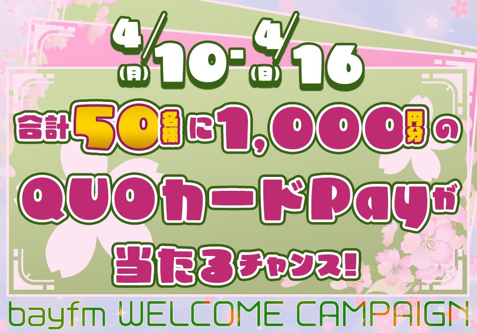 新生活がスタート、そしてbayfmにようこそ!4月10日(月)〜4月23日(日)の2週間、「bayfm WELCOME CAMPAIGN」を開催!