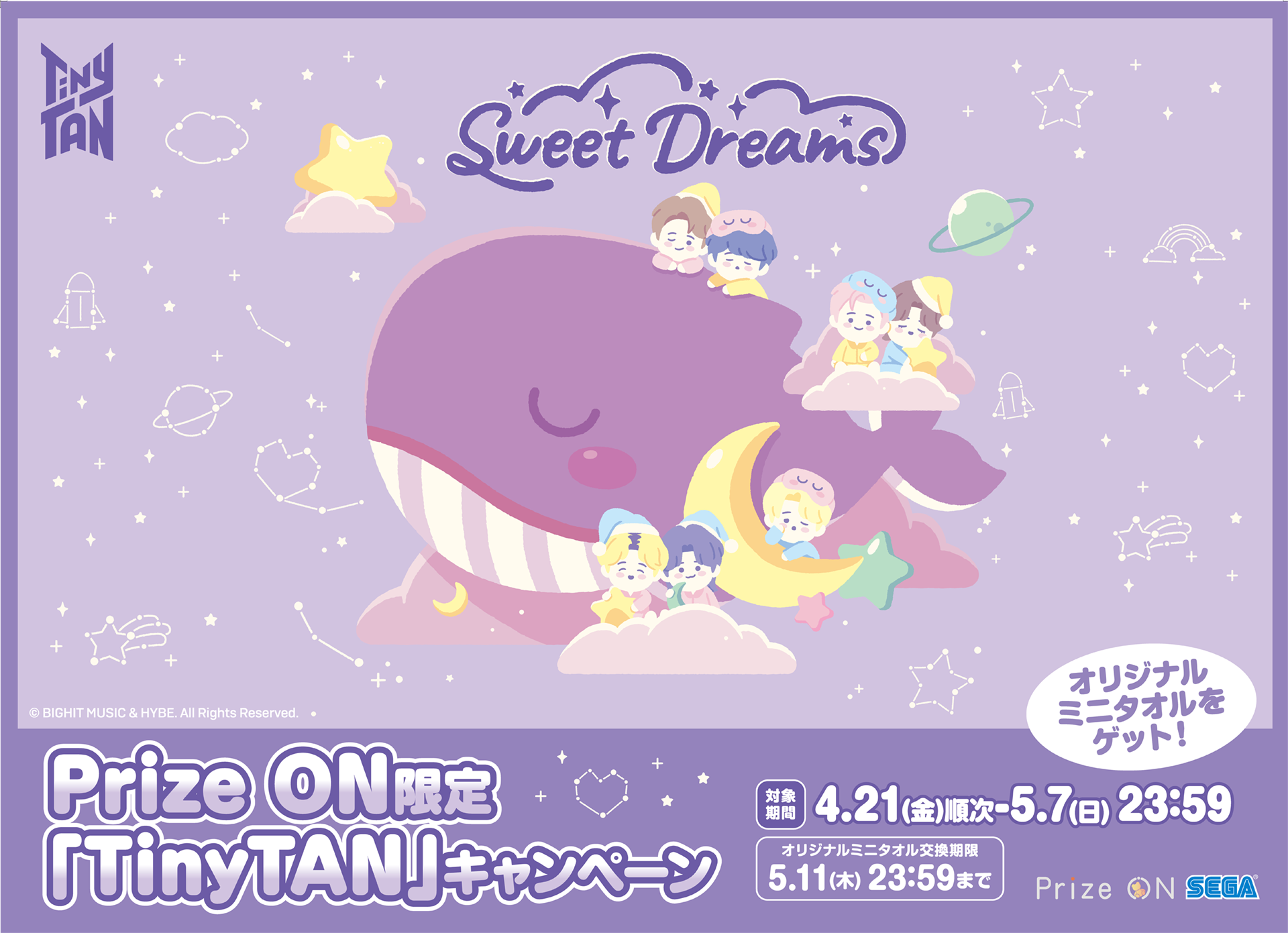 株式会社セガ(本社:東京都品川区、代表取締役社長COO:杉野行雄)は、UFOキャッチャー®をおトクに遊べるアプリ『Prize ON(プライズ オン)』において、『Prize ON限定「TinyTAN」キャンペーン』を2023年4月21日(金)より開催いたします。