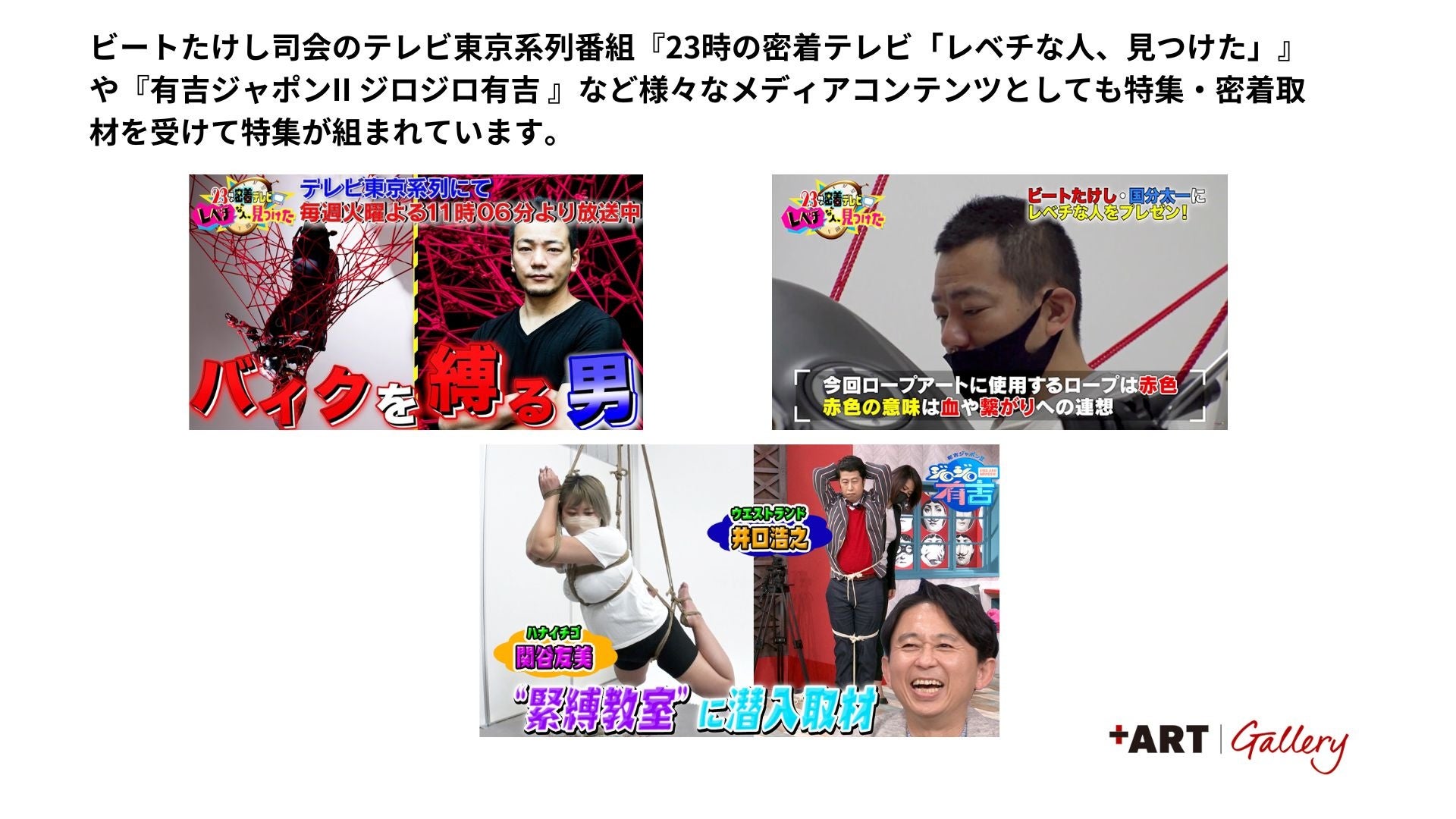 このたび、+ART GALLERYでは、メディアなどでも話題の現代アーティスト/緊縛師/ロープアーティスト/写真家のHajime Kinoko氏による個展「緊縛美装」を渋谷駅直結の+ART GALLERYにて開催いたします。