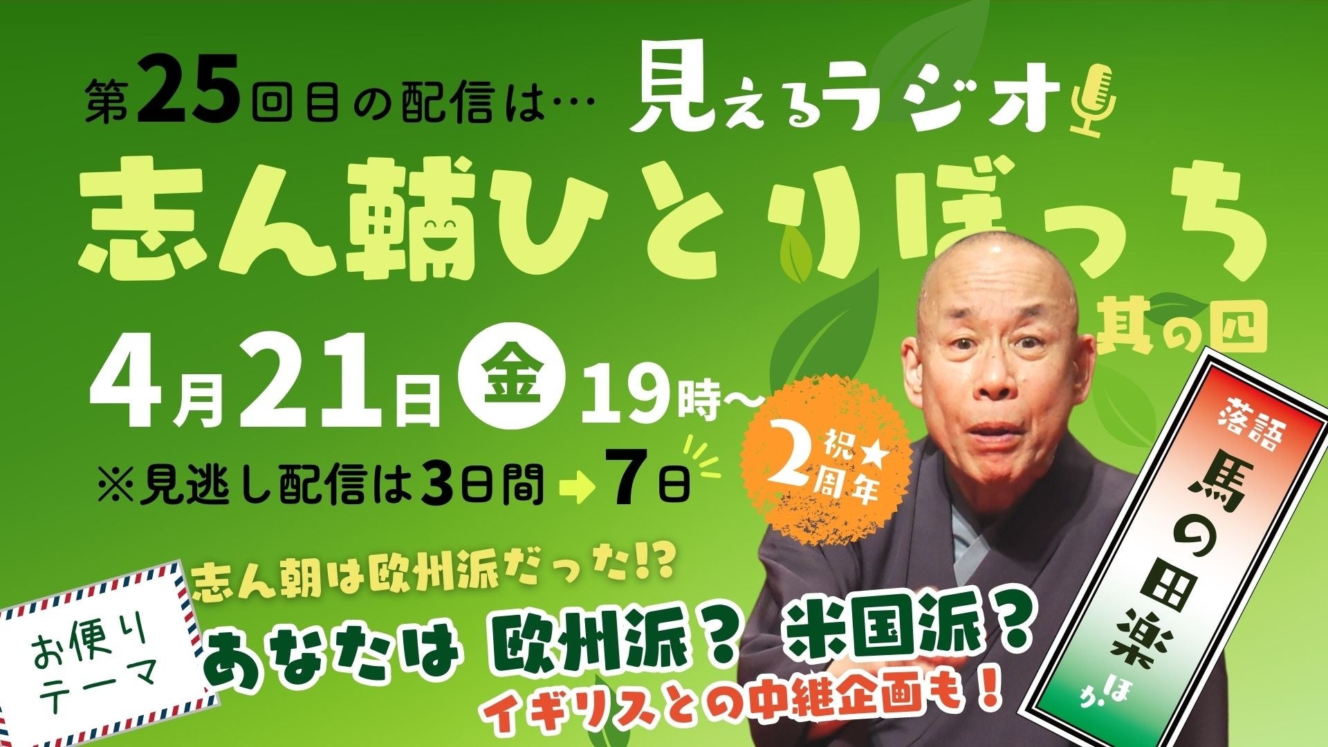 オンライン落語会「志ん輔と仲間たち」 4月21日(金)第25回配信          あなたは欧州派? アメリカ派? - 英国在住のロバーツ平浩子さんが「出演」