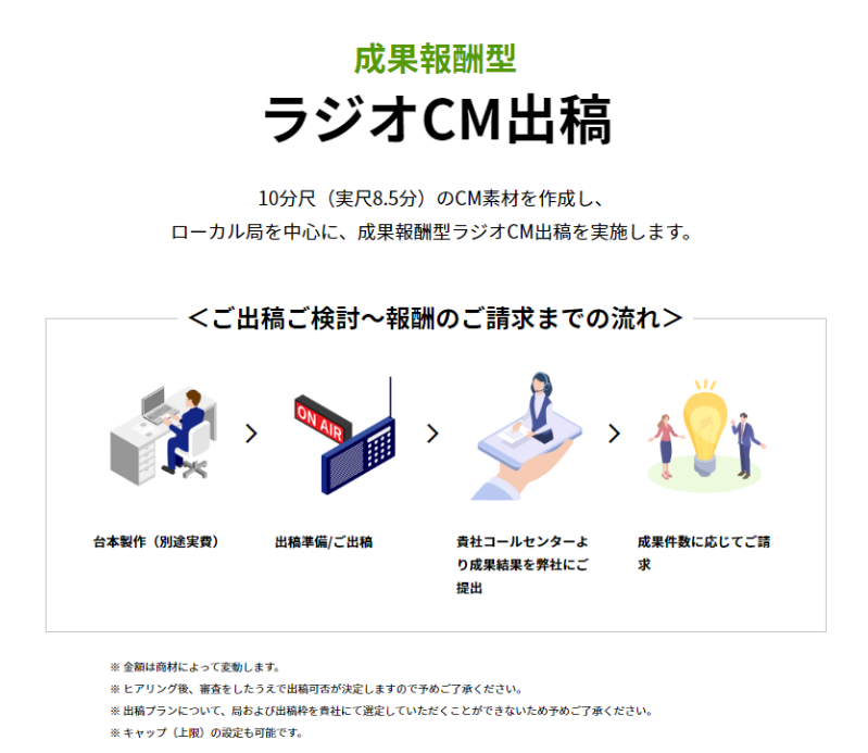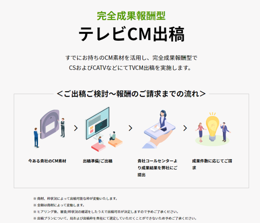 弊社サービスの最大の特徴は「テレビCM」と「ラジオCM」のアフィリエイトがあることです。これは、弊社が今まで広告代理店として様々なメディア様との関係を構築してきたからこそできるサービスです。