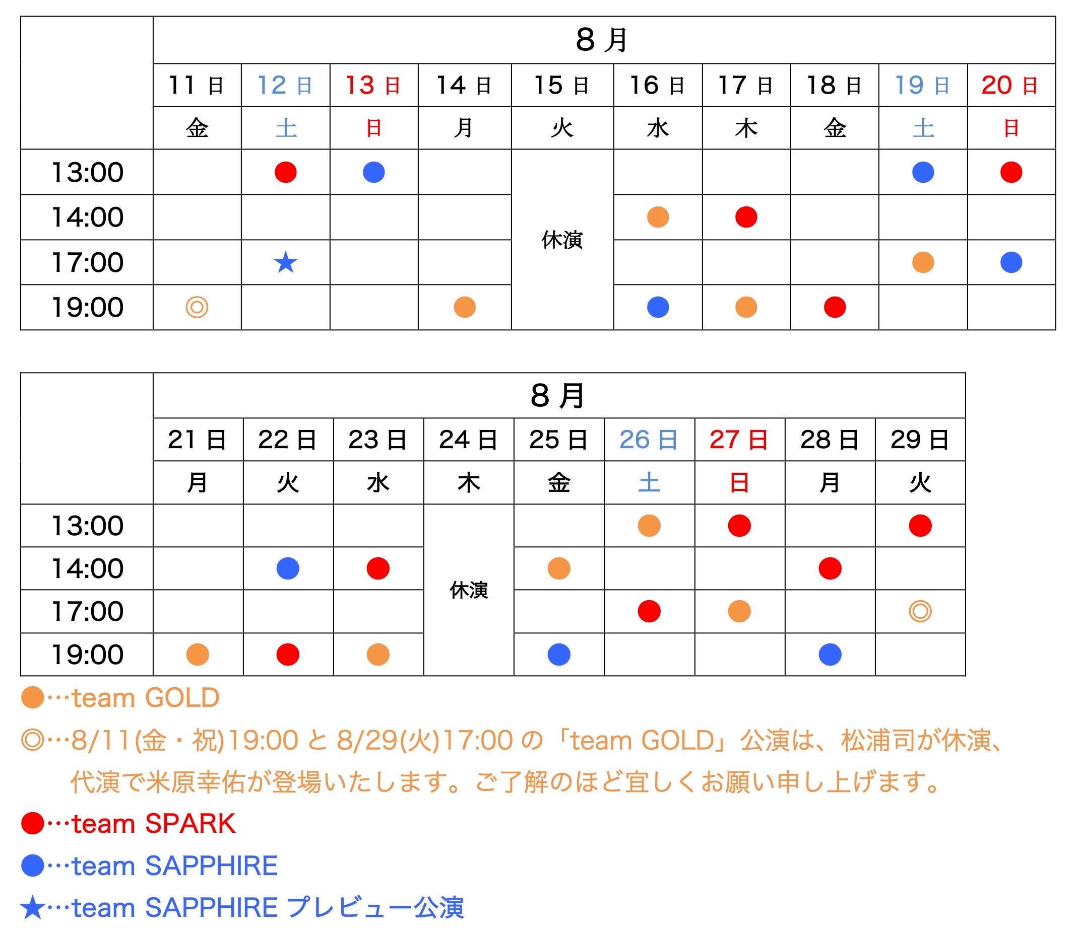★team SAPPHIREプレビュー公演(8月12日(土)17:00公演) 9,500円