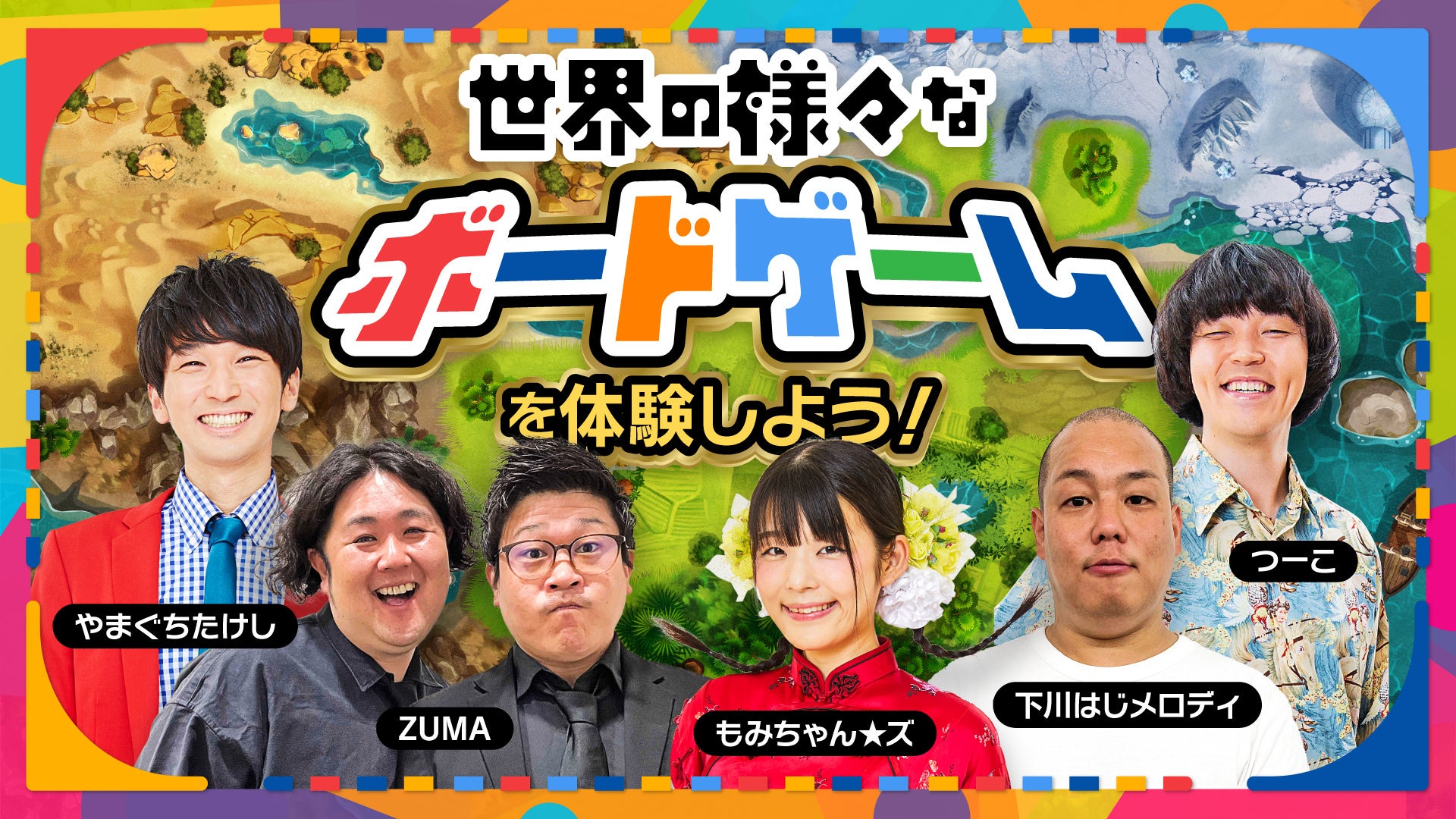 世界のボードゲームを芸人と一緒に楽しめます。