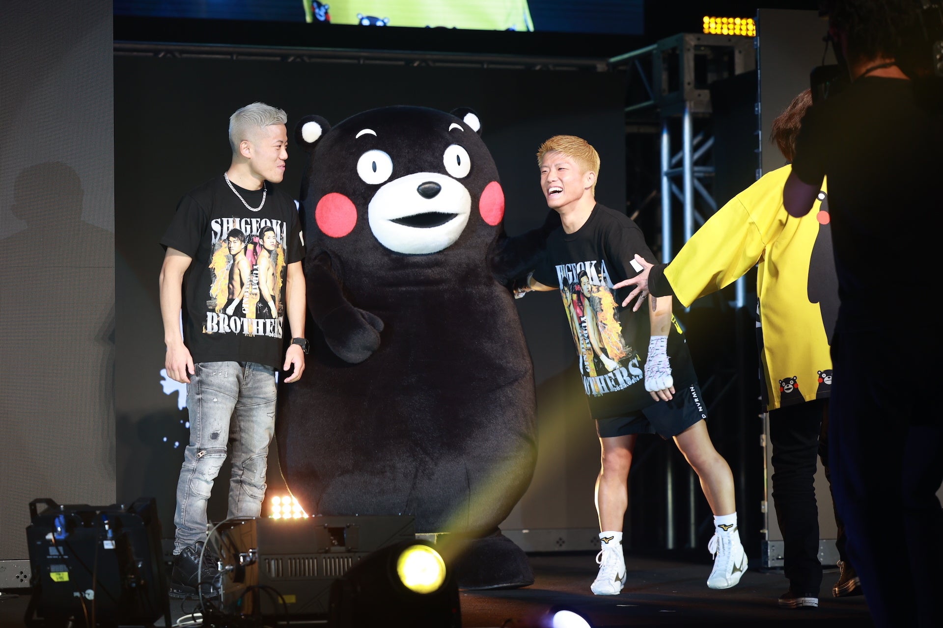 イベントの中盤では、熊本出身である重岡兄弟の応援団として、熊本県の人気キャラクター「くまモン」がサプライズ登場した。7年前の4月16日は、熊本地震の本震が発生した日で、重岡兄弟の自宅や知人宅が被災した過去もあり、「勝って明るいニュースを故郷に届けたい」と試合前より話していた重岡兄弟。地元・熊本から駆け付けてくれた「くまモン」からの熱烈な応援に、試合前の二人は笑顔と勇気をもらっていた。