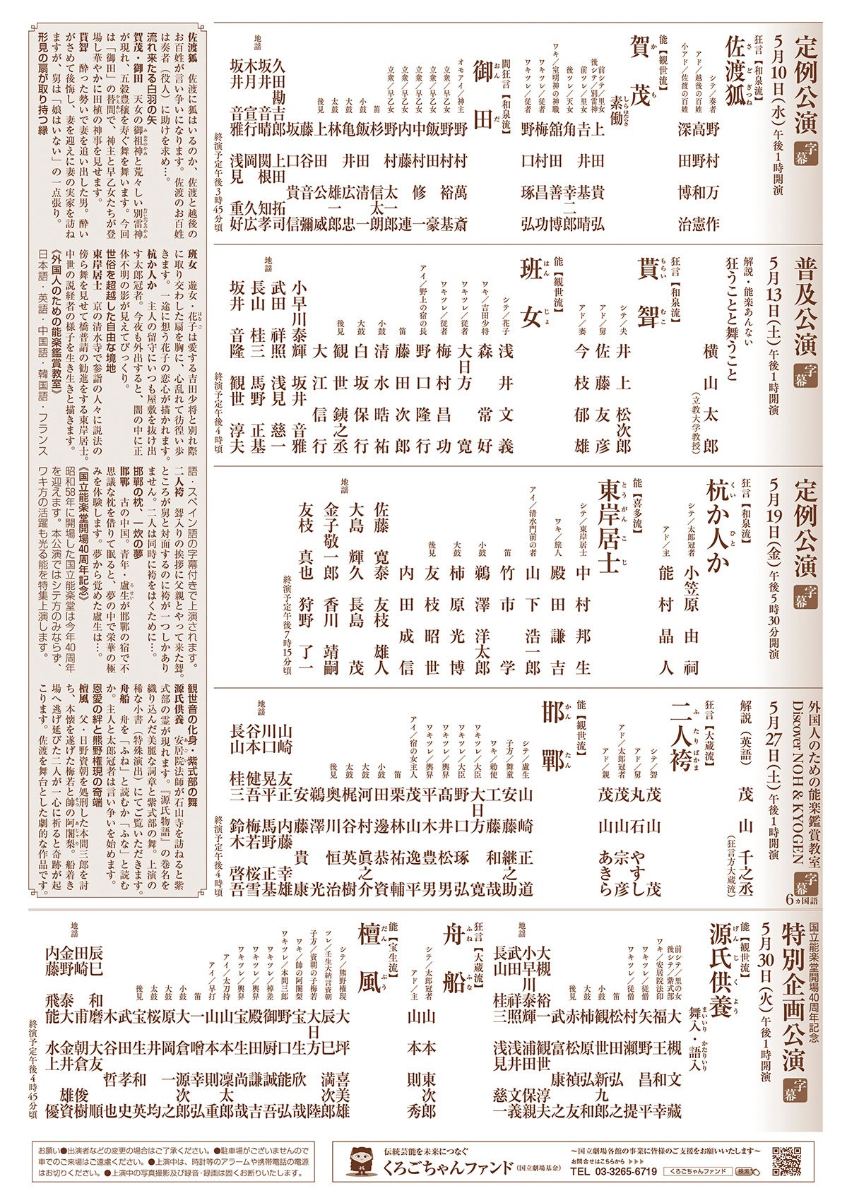 - 5月国立能楽堂開場40周年記念 特別企画公演 源氏供養・舟船・檀風