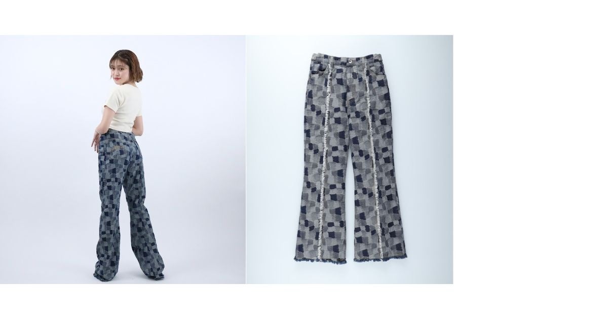 ベルボトムシルエットは足が長く見えトレンド感があるシルエット。丈が長めなので切りっぱなしなので身長に合わせて裾のカットが可能。バックポケットには王林さん手書きの岩木山刺繍モチーフが入ります。ウエストには実際に青森で1つ1つ手作業で作成した、オリジナルのこぎん刺繍タグがついています。