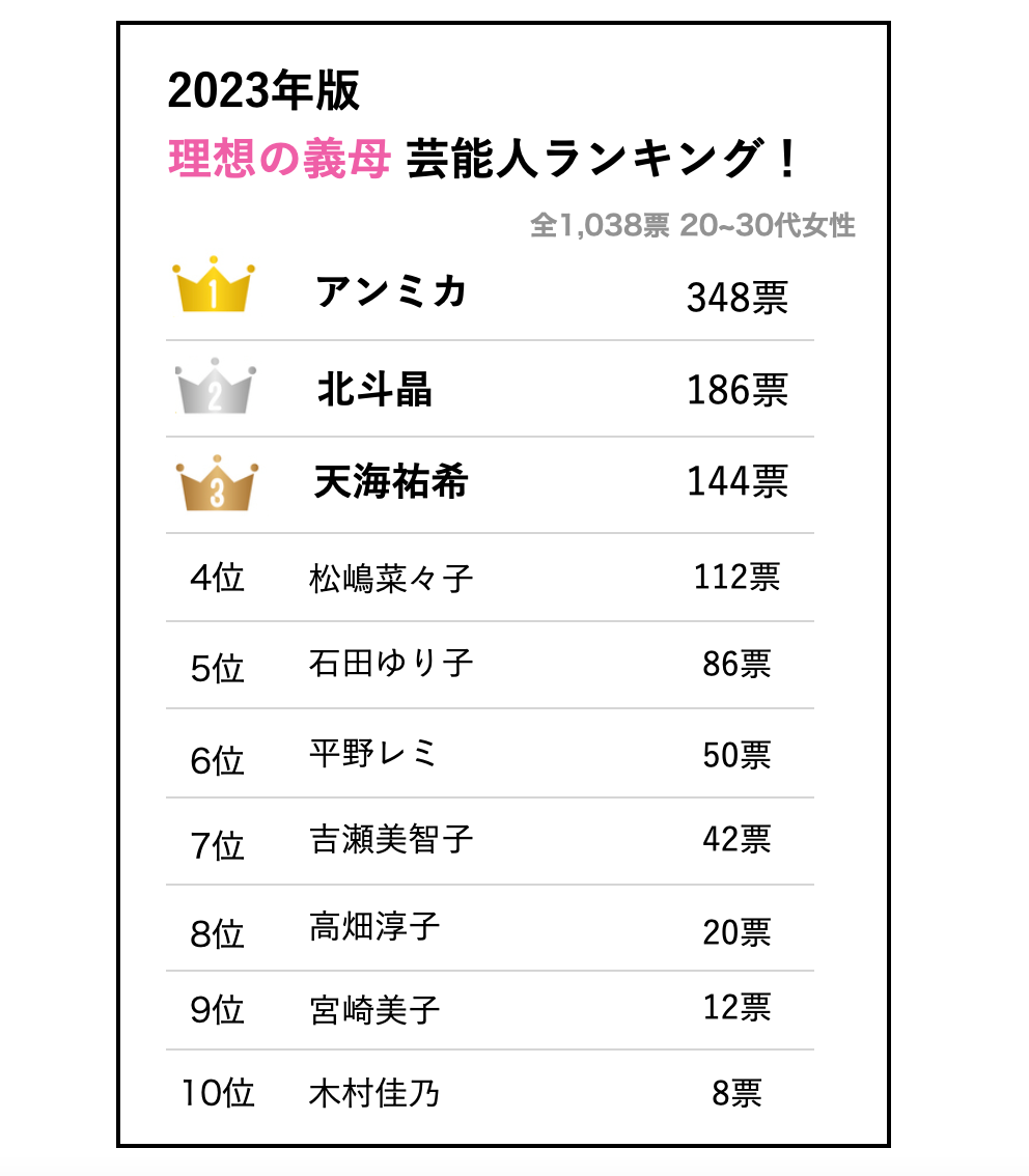 ・インスタユーザーが選ぶ理想の義母 1位は アンミカさん。
