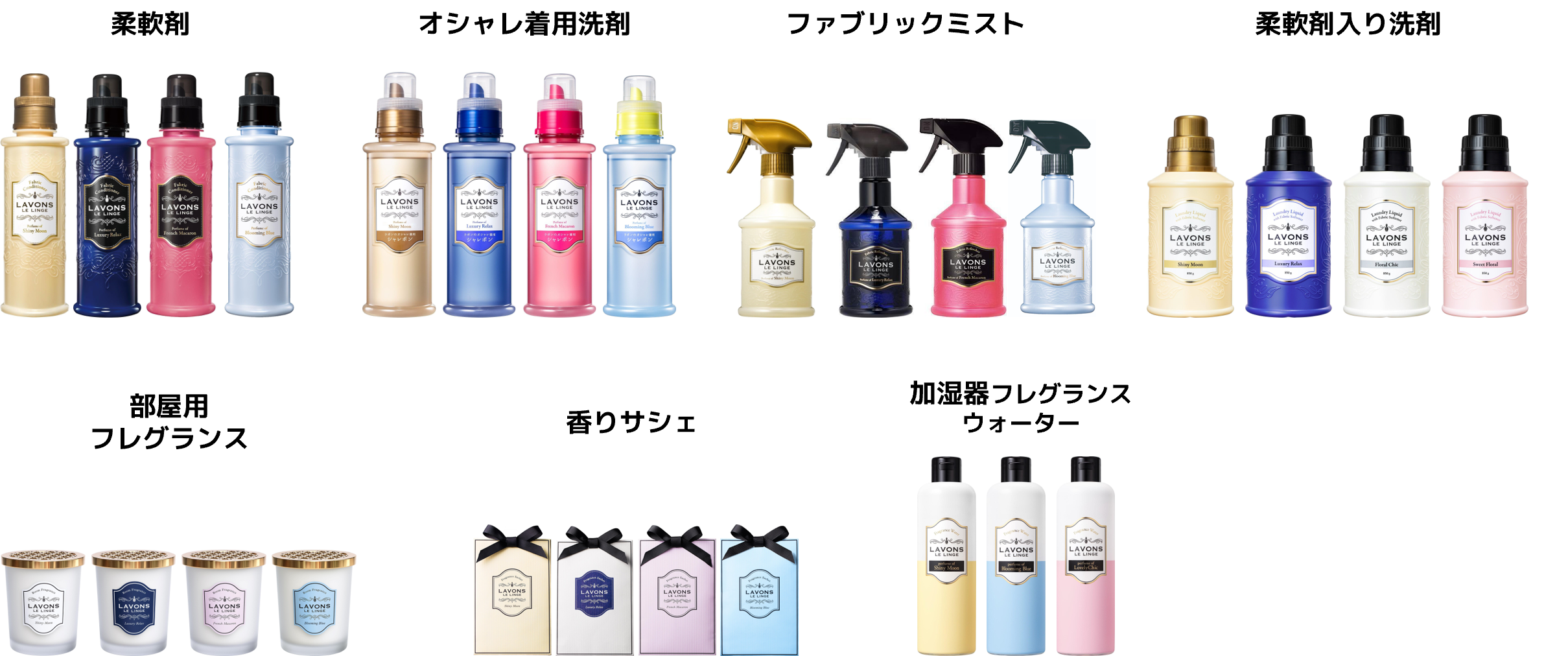2013年9月の発売以降、柔軟剤、洗剤、ファブリックミスト、芳香剤を展開しており、お気に入りの香りを様々なシーンで楽しむことができます。
