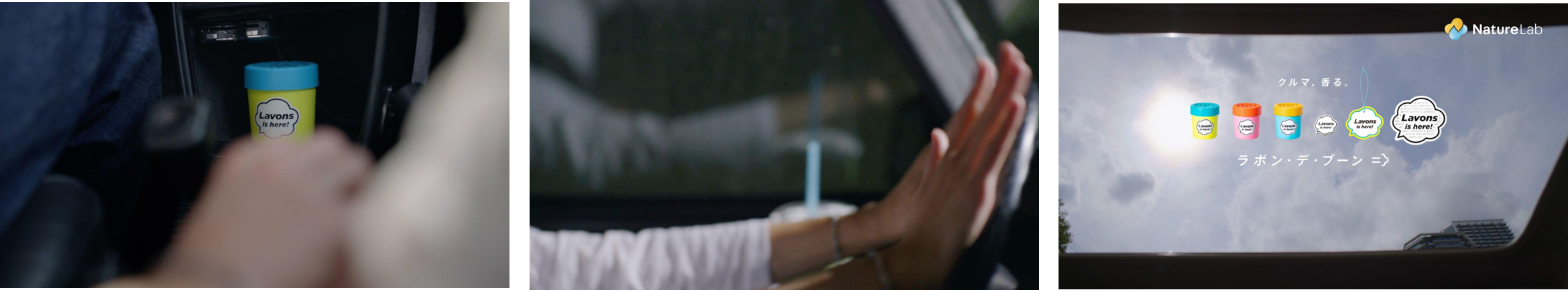 車内の『ラボン・デ・ブーン』の置き型タイプやペーパータイプの香りと共に、その日の回想シーンへ。
