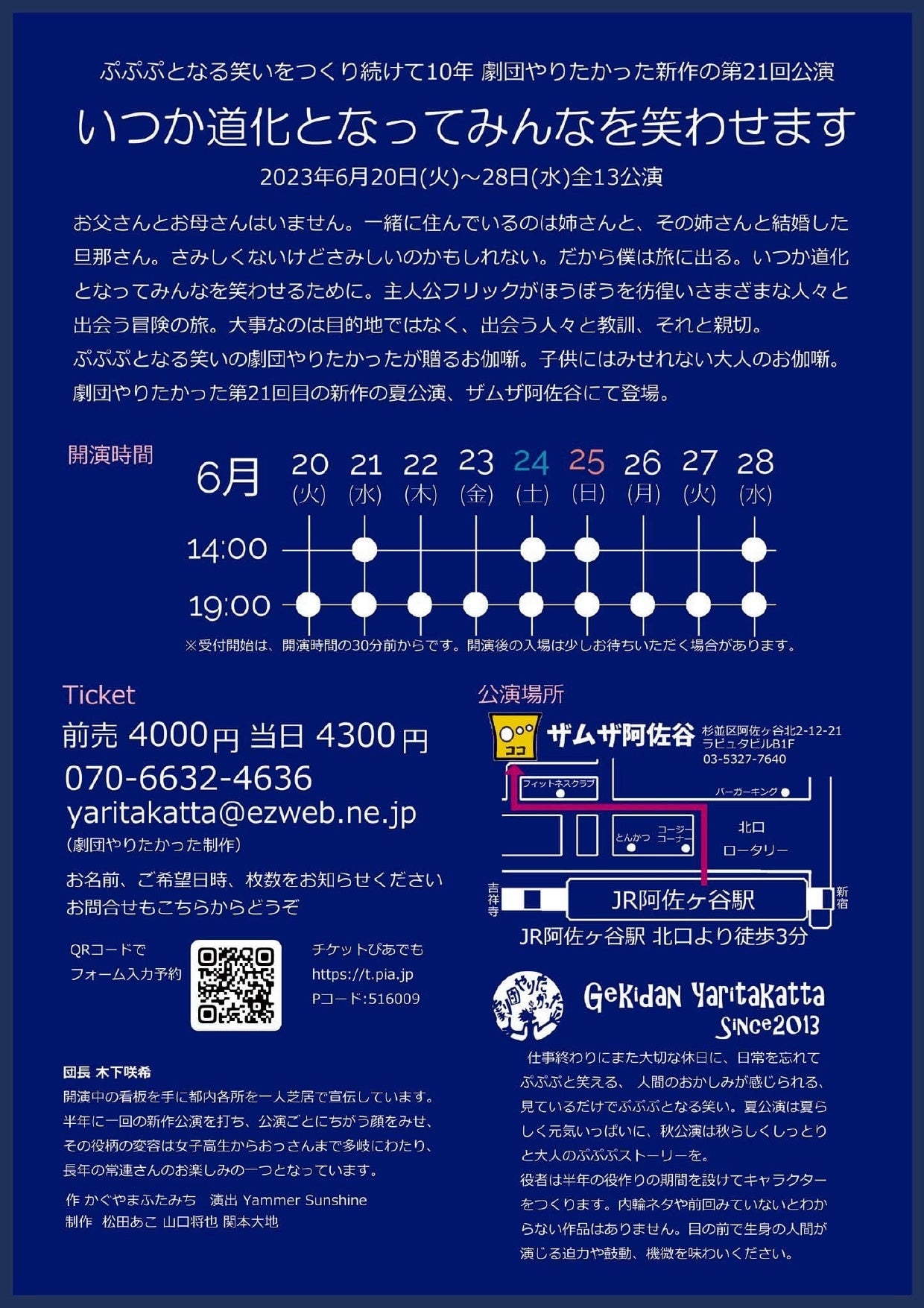 劇団やりたかった『いつか道化となってみんなを笑わせます』が2023年6月20日 (火) ~2023年6月28日 (水)にザムザ阿佐谷(東京都杉並区阿佐ヶ谷北2-12-21)にて上演されます。