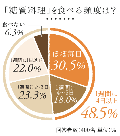 さらに約半数の人が週の半分以上、「糖質料理」を食べていることが明らかになりました。【図2】