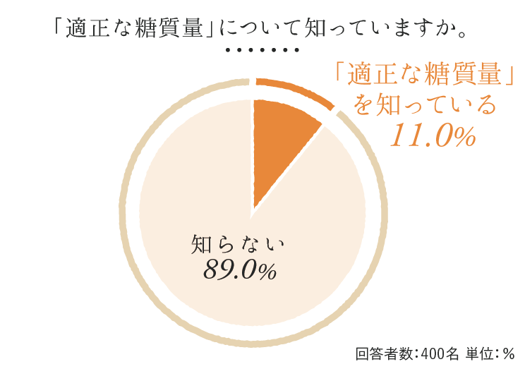 「適正な糖質量について知っている」と答えたのはわずか11.0%でした。糖質の摂りすぎへの意識の高さに反し、「適正な糖質量」については理解度が低いことが推察されます。【図7】