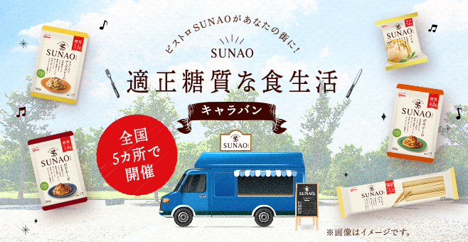SUNAOは、カラダに気を配りながら、100%食べることを楽しめる、カラダにやさしいおいしさを作りたい、そんな思いから生まれました。“SUNAO「適正糖質な食生活」キャラバン”を通して、まるでビストロで食べるようなSUNAOブランドの「おいしさ」を体感いただくとともに、「適正糖質」の理解促進を図ってまいります。