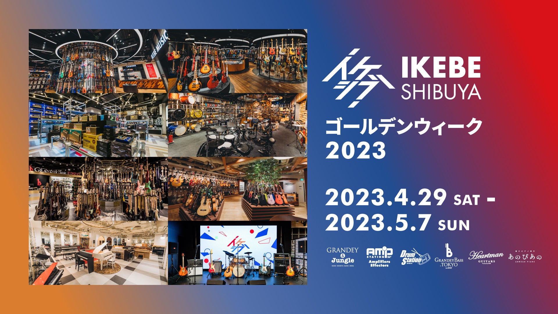 イケシブ(IKEBE SHIBUYA)4階「ハートマンギターズ」がお送りする、「聴いて」「体験」できるゴールデンウィークスペシャルイベント。期間中には、店内展示だけではなく、イケシブライブスにてスペシャルゲストを招聘したイベント、試奏会などを開催いたします。