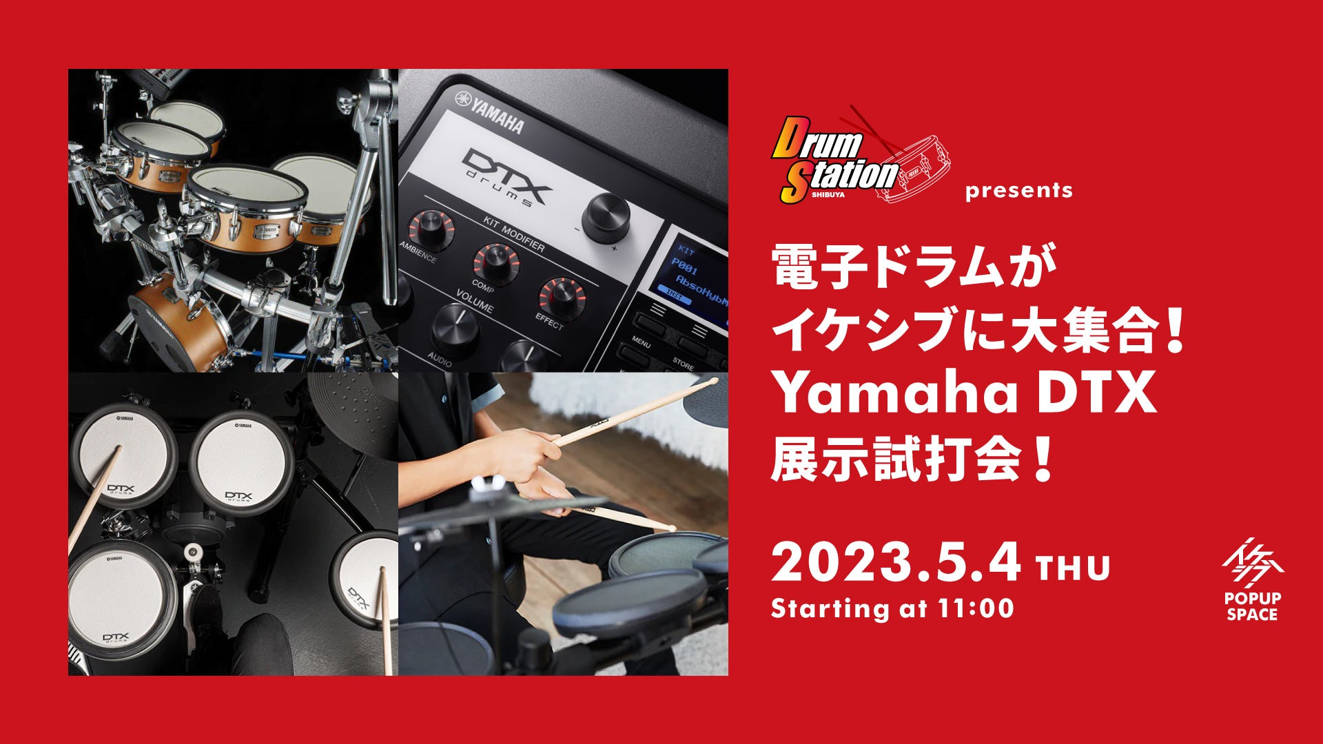 5月4日(木・祝)は「誰もがドラムをより楽しめる世界」を目指すYamahaの電子ドラム「DTX Drums」のラインナップがイケシブに集合します!