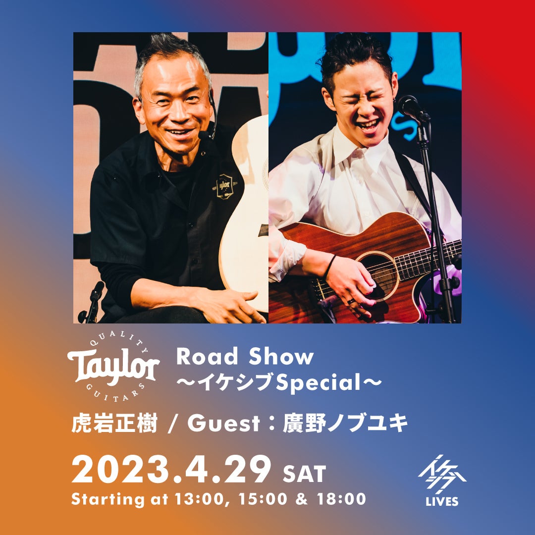 楽しく、解りやすい解説でおなじみのテイラー・プロダクト・スペシャリスト・虎岩正樹氏によるテイラーギターセミナー「ロードショー」。今回は「イケシブ Special」と銘打ち、いつもと一味違う特別な3本立てでお送りします。ゲストにテイラーアーティストの廣野ノブユキ氏をお招きし、「プロダクト・スペシャリスト」「アーティスト」「楽器販売員」の3つの視点から、テイラーの魅力を余すことなく紐解きます。