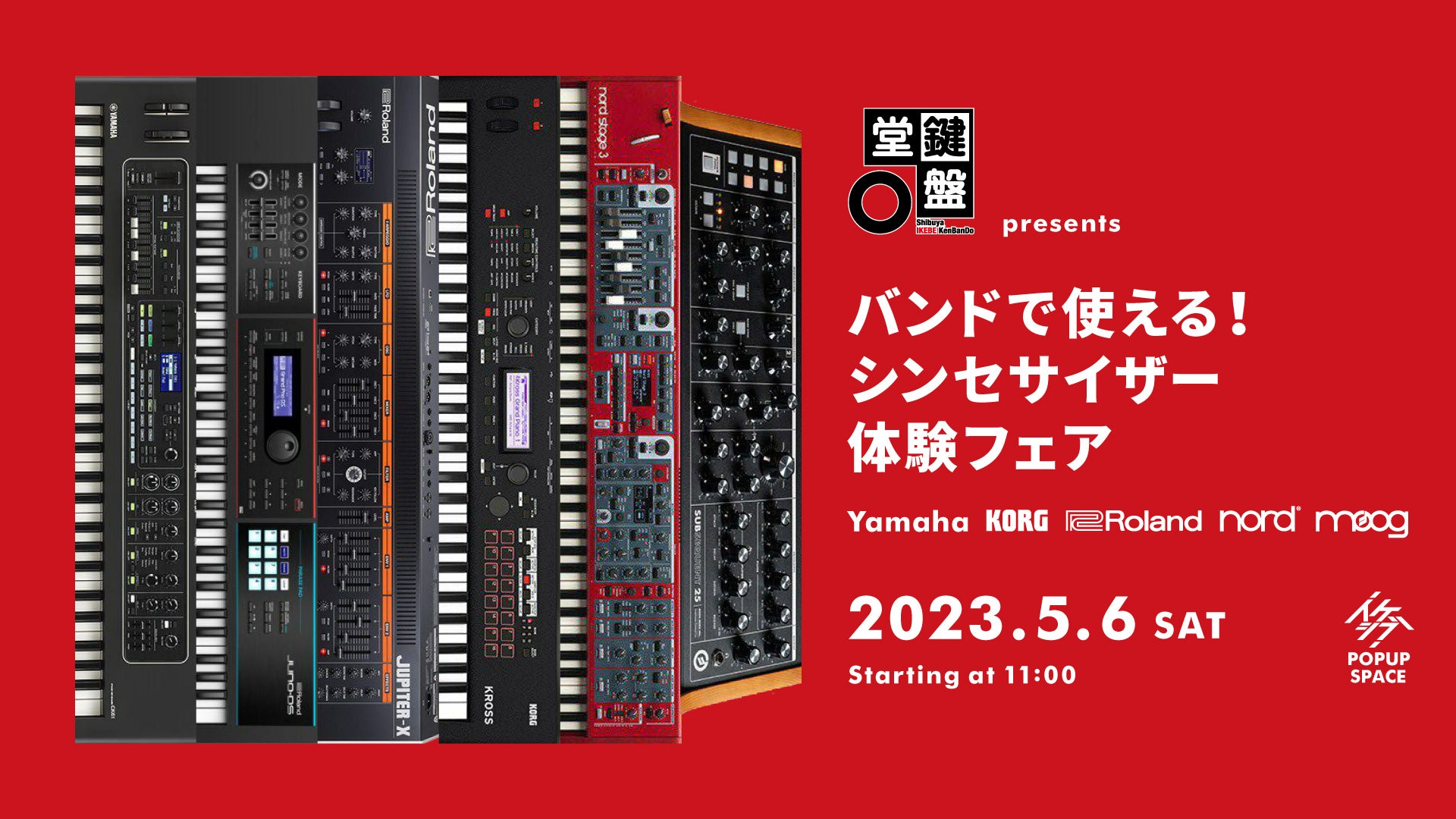5月6日(土)は「バンドで使えるシンセサイザー」をテーマに、これまでシンセサイザーを演奏したことのない方でもお楽しみいただける体験会をイケシブPOPUP SPACEにて開催いたします!