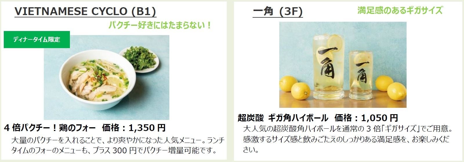 また、イベントに合わせて4月27日(木)~5月28日(日)までの期間、「五感で味わうエンタメグルメ」が登場。観劇の祭典「Hibiya Festival」と合わせて、各店舗でもパフォーマンス込みで楽しむメニュー、見た目にインパクトのあるメニューなどエンターテインメント性のある特別メニューを味わえます。