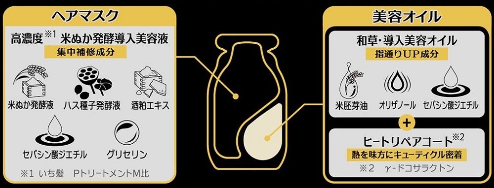 集中補修成分「高濃度(※1)米ぬか発酵導入美容液」配合のヘアマスクで、髪の内部を補修。