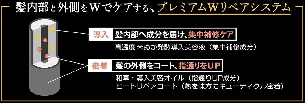●髪内部と外側をWでケアする「プレミアムWリペアシステム」