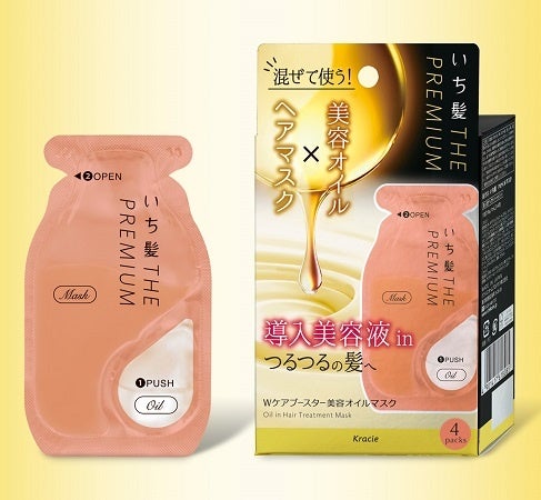 「いち髪 THE PREMIUM Wケアブースター美容オイルマスク」は、ハイダメージ毛のケア方法として「トリートメントにヘアオイルを混ぜて使う」という美容のプロの裏技に着目し、「ヘアマスク」と「美容オイル」、2つの剤形を混ぜて、2つの効果を発揮し、つるつるの仕上がりを叶える新アイテムです。