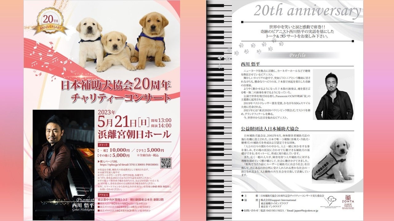 ※補助犬チャリティーコンサートは、20周年記念チャリティコンサート実行委員会主催で開催・運営いたします。