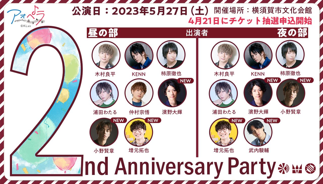 また、5月27日(土)に開催される『アオペラ aoppella!? -2nd Anniversary Party-』の先行抽選申し込みがスタートしました。