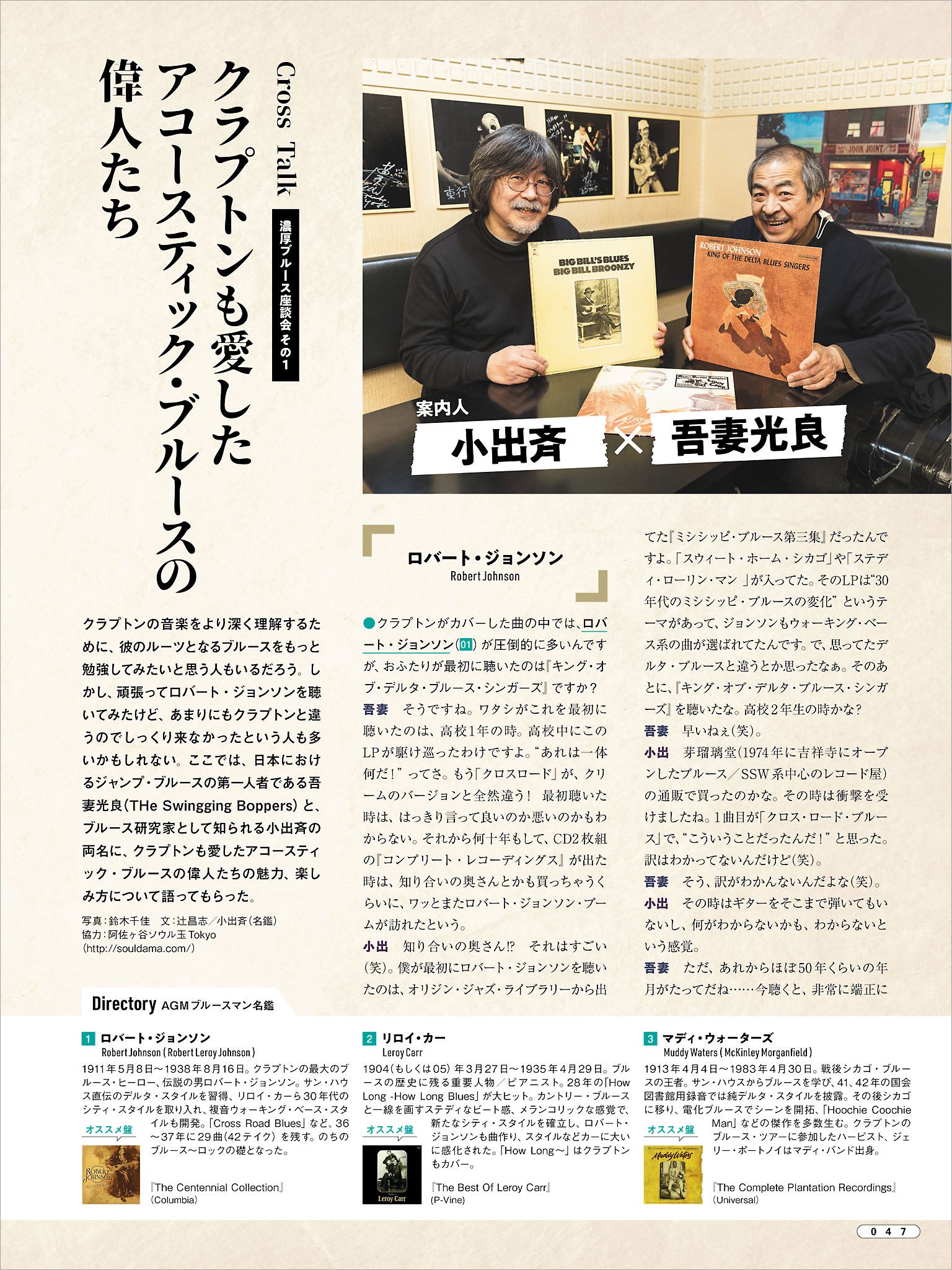 また、同特集では、1970年代から活躍する日本を代表するブルースマン……内田勘太郎(憂歌団)、木村充揮(憂歌団)、上田正樹(サウストゥサウス)、永井“ホトケ”隆(ウエスト・ロード・ブルース・バンド)、吾妻光良(The Swinging Boppers)、小出斉(ローラーコースター)といたレジェンドが、各々のクラプトン感、今だからこそ後世に伝えたいブルースへの熱い想いを語っています。クラプトン好きの人もそうでない人も、本特集をきっかけにもう一度ブルースと向き合ってみてはいかがでしょうか。