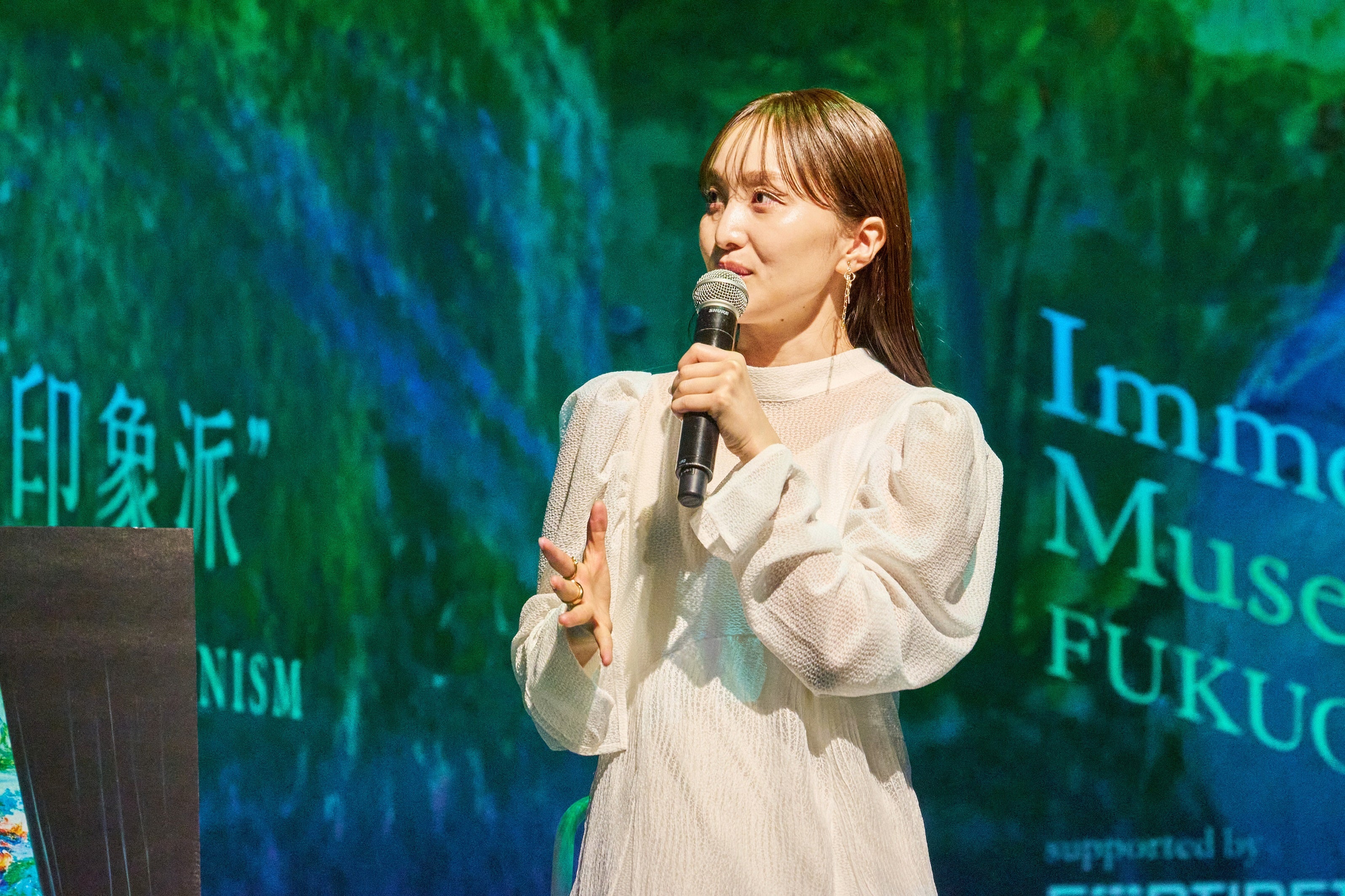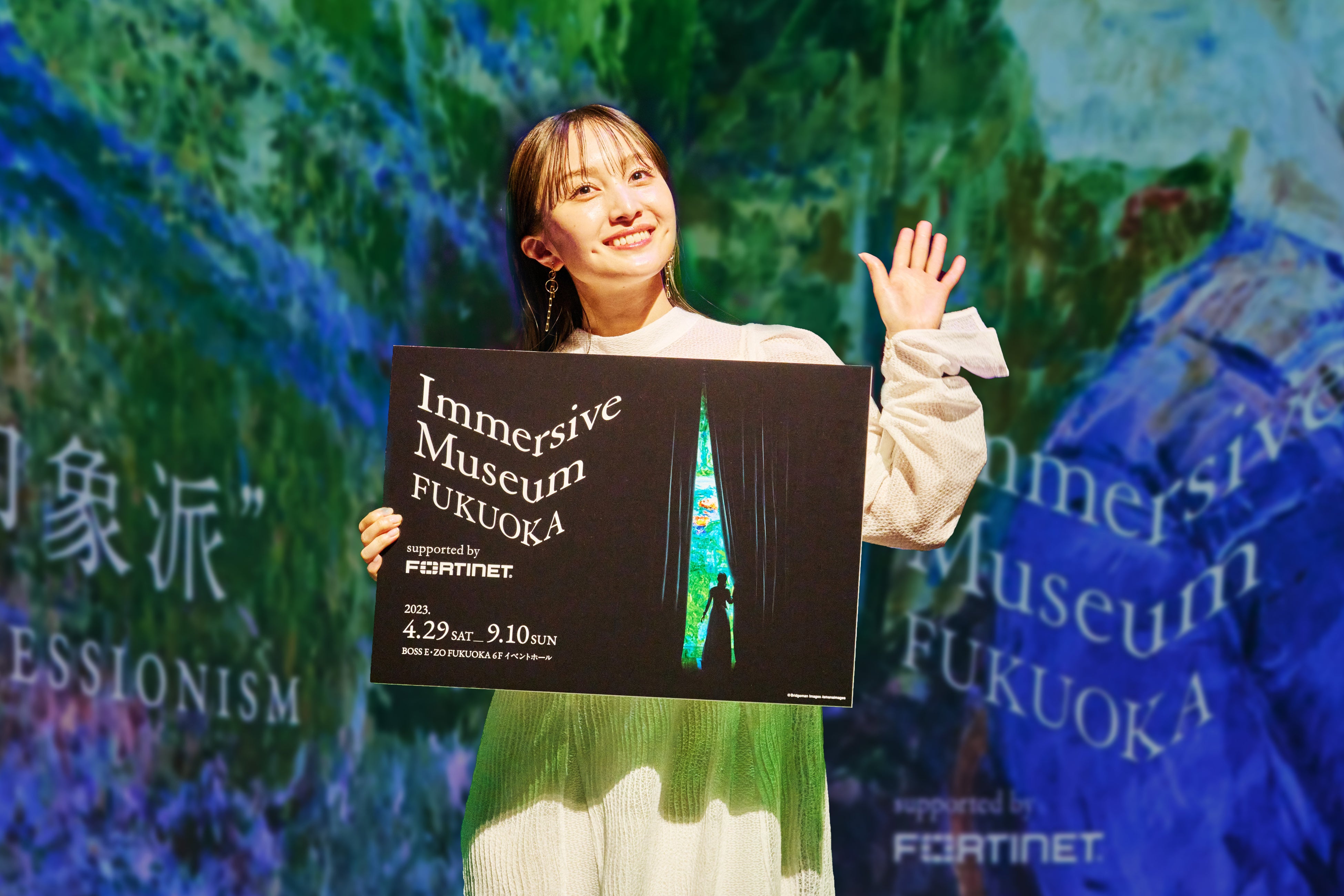 今回の内覧会では、「Immersive Museum FUKUOKA supported by FORTINET」公式アンバサダーの百田夏菜子さんが登場し、イマーシブミュージアムを実際に体験したり、体験した感想を語っていただきました。