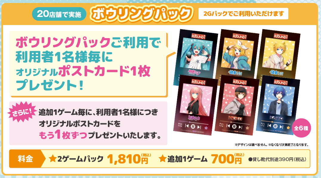 ボウリングパックご利用1名毎に、「オリジナルポストカード」をプレゼントいたします。