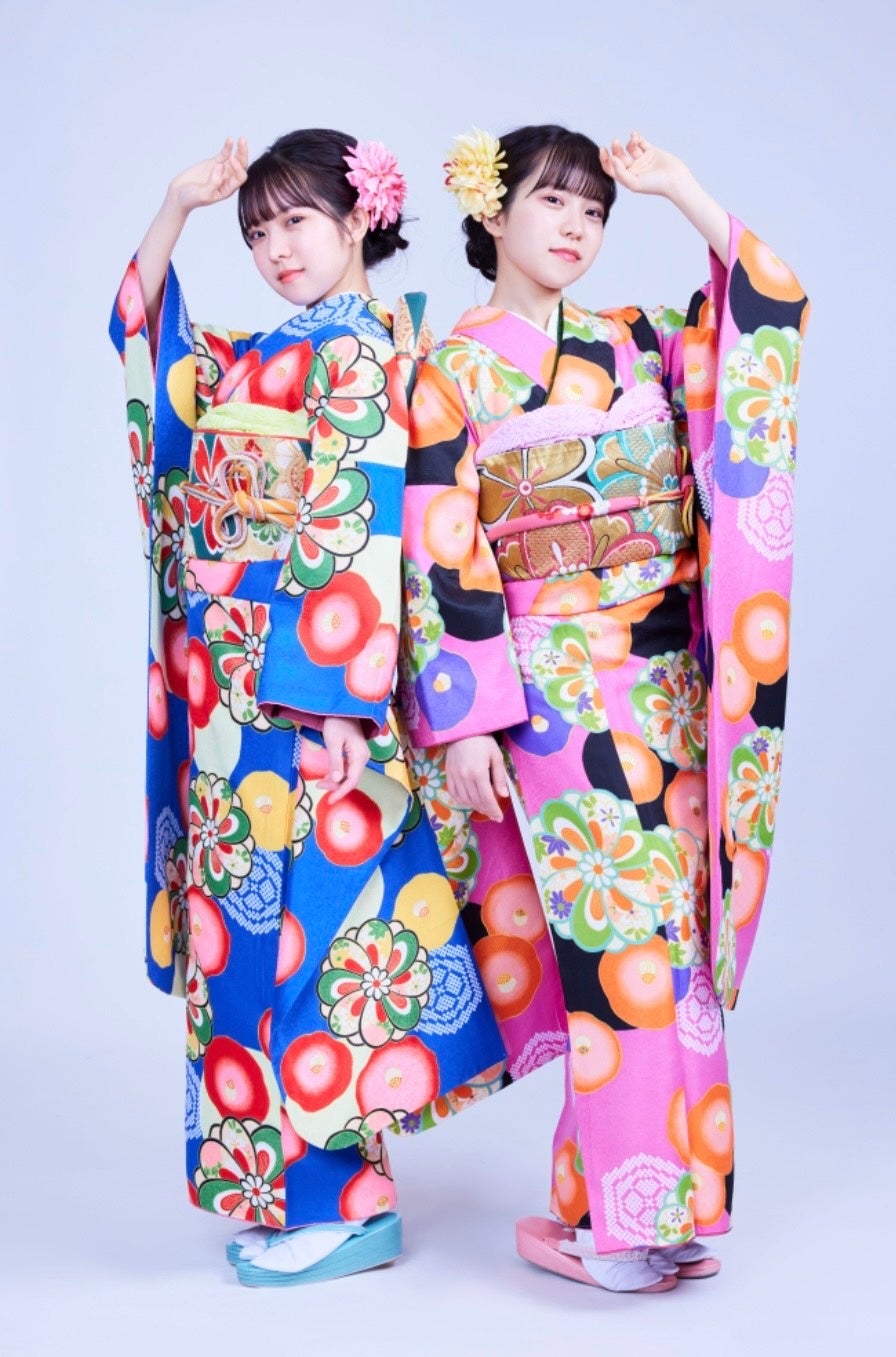 私は、成人式は打ち掛けドレスを着て出席したので、振袖を着るのは今回が初めてでした。今人気の可愛らしいレースの振袖と、ビビットカラーの華やかな振袖を、双子の姉と色違いで着させていただきました!今回はいつものイメージと変えて、私が青、姉がピンクを着ました。ピンクと水色のレース振袖を着付けていただいた時は、スタッフさんに「キキララみたいだね!」「レムラムみたい!!」と、キャラクターをイメージしていただけてとても嬉しかったです。最初は少し緊張しましたが、スタッフの皆さんと楽しく撮影ができて良かったです。こんな素敵な機会を下さり、本当にありがとうございました!!