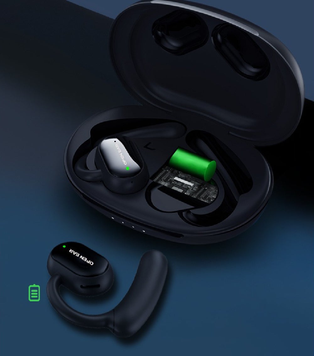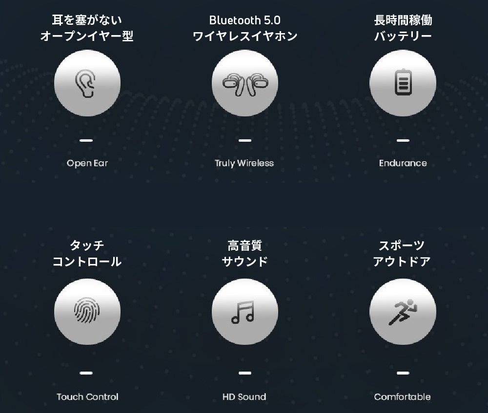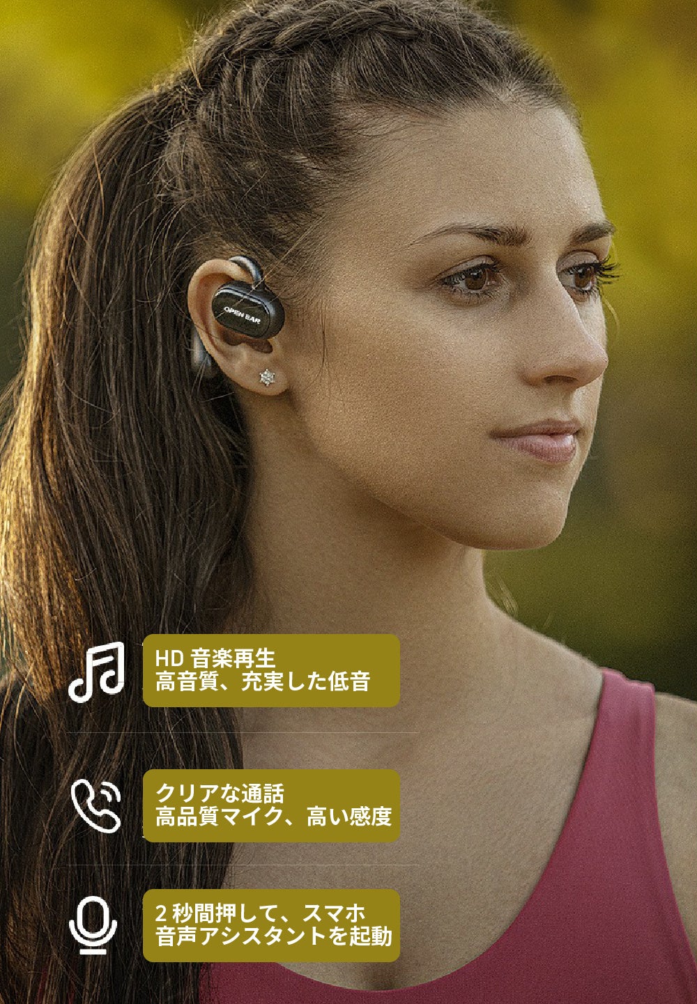 周囲の環境音を遮らないオープンイヤー型のワイヤレス骨伝導イヤホン