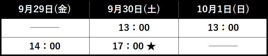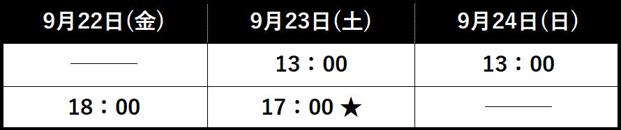 【日程】 東京:9/23(土) 17:00公演終演後、大阪:9/30(土) 17:00公演終演後