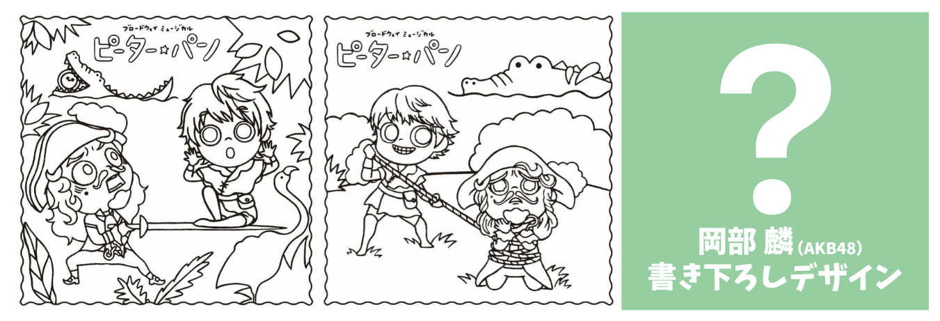 ミュージカル『ピーター・パン』オリジナルのぬりえ(全3種)!3種類のうち1つは、ウェンディ役岡部 麟(AKB48)さんの書き下ろしデザインです。