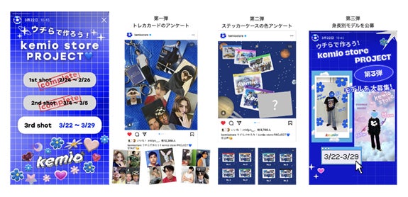 ブランドのSNSを活用し、ファンを巻き込んだキャンペーン企画「ウチらで作ろうkemio store」を実施いたしました。商品企画のアンケートやWEBサイトの身長別モデルの公募をInstagramで行うなど、ファンと共創するブランド作りを実現しています。