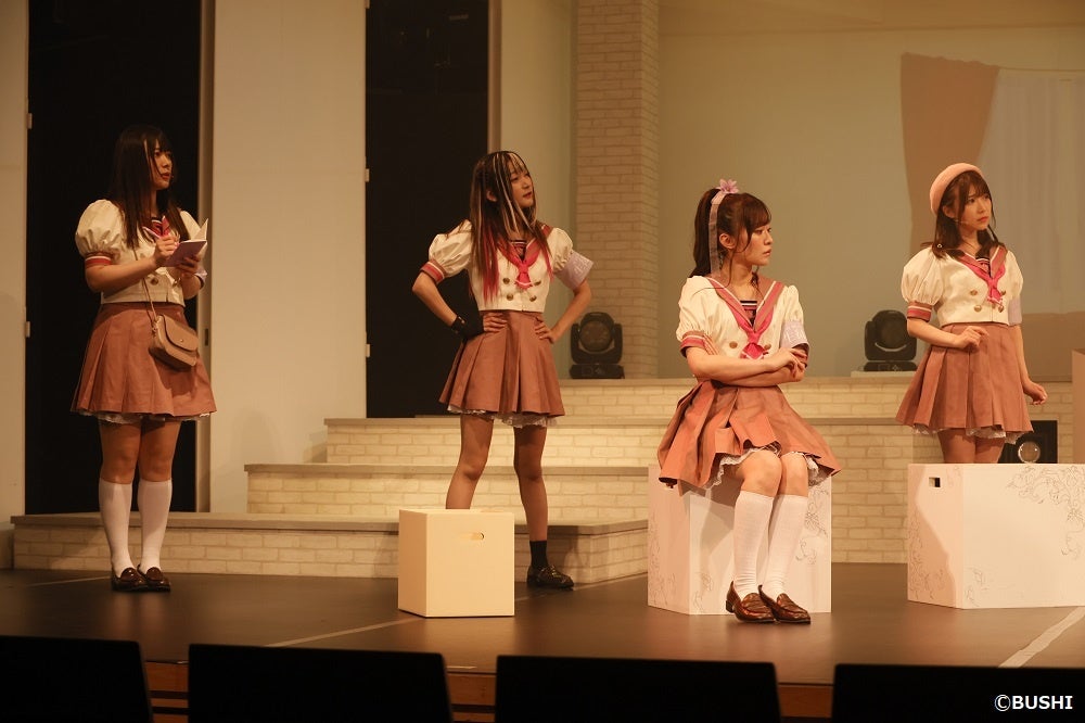 渡瀬結月(竹下みいこ役)。Merm4idより平嶋夏海(瀬戸リカ役)、岡田夢以(水島茉莉花役)、葉月ひまり(日高さおり役)、根岸 愛(松山ダリア役)。さらに舞台特別出演キャストとして、石飛恵里花(生徒会長役)、赤尾ひかる(副会長役)、千春(書記役)、西本りみ(庶務役)の4名となっております。