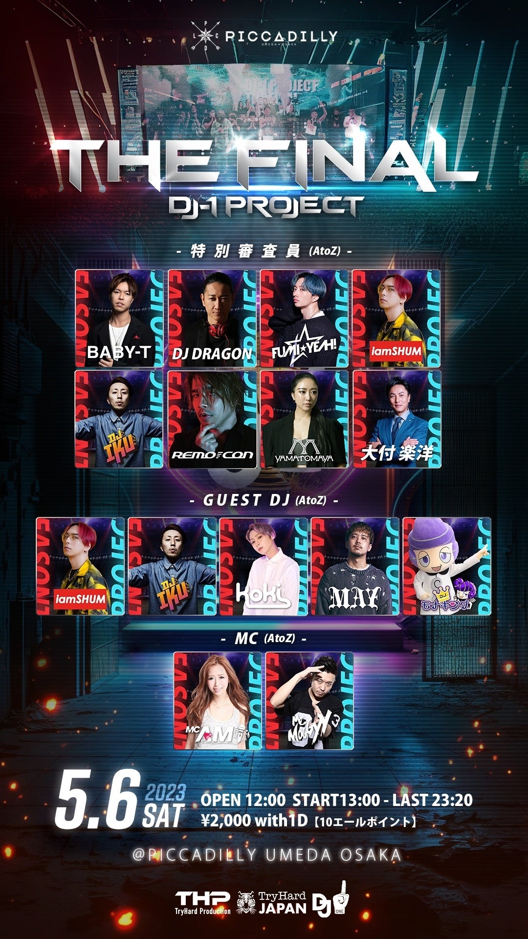 株式会社TryHard Japan(トライハードジャパン:大阪市中央区)は、2023年5月6日(土)にCLUB PICCADILLY UMEDA OSAKA(所在地:大阪市北区)にて、次世代DJNo.1を決める音楽イベント「DJ-1PROJECT THE FINAL」の出演者を発表いたします。
